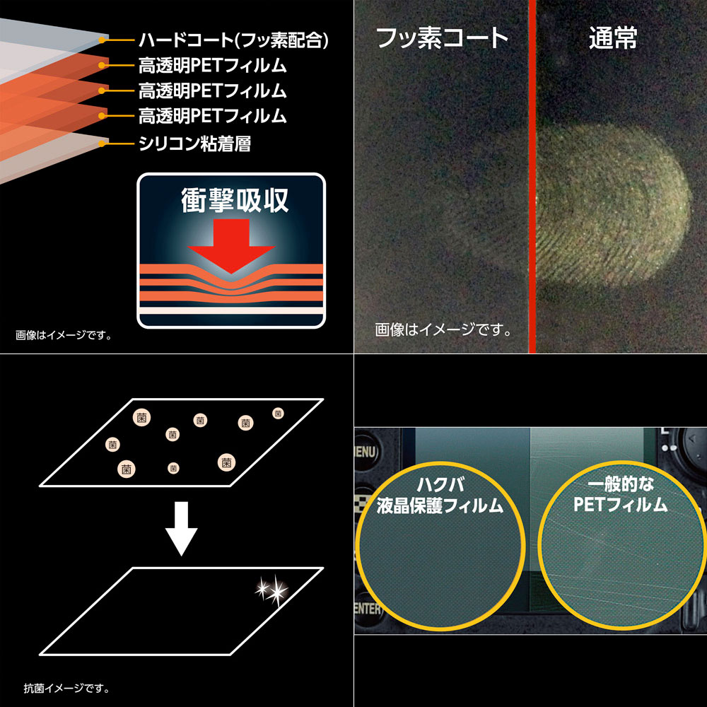 ・反射光を抑える反射防止(AR)コートを採用し、貼る前よりも高い視認性を実現。 ・業界最高クラスの全光線透過率95.6%の透明度で、正確な色調と明暗の階調をストレートに表現。 ・撥水・防汚効果のあるフッ素コートにより、指紋が付きにくく、指紋が付いても簡単に拭き取ることが可能。 ・傷に強いハードコート処理(表面硬度 3H)で、「すり傷」や「爪あと」などが残りにくい表面硬度と保護力を発揮。 ・シリコン粘着層により、貼った時に入ってしまった気泡が自然に消滅。微細な埃であればシリコン粘着層が取り込み気泡発生を低減。※ゴミなどが入っている場合は、気泡は抜けません。 ・シリコン粘着層により、貼り付けに失敗しても吸着力を損ねずに貼り直すことが可能。 梱包内容:液晶モニター用フィルム1枚/超極細繊維液晶クリーナー1枚 フィルムサイズ :72.5×48.9mm 材質 :フィルム:PET、シリコン膜 液晶クリーナー:不織布 対応機種:FUJIFILM X-E5 JANコード :4977187348675 商品型番 :DGF3-FXE5 希望小売価格:税込1,970円 送料10枚迄 ○配送方法は『メール便』を御指定ください。○クレジットカード、郵便振替、銀行振込のお支払方法をお選び下さい。