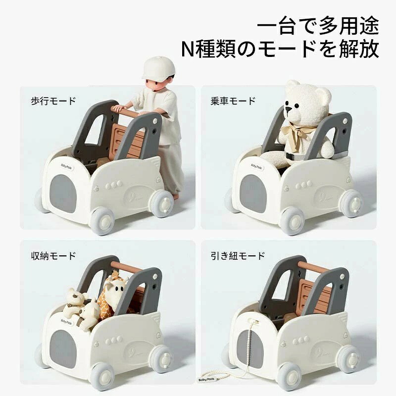 ごっこ遊びやお気に入りのおもちゃなどを入れて運んだり、つかまり歩きの練習用としても、屋内専用でおもちゃ箱としても使えます。タイヤは室内で遊んでもフローリングなどの床を傷つけません。 はじめの一歩が踏み出しやすく、また歩行がしやすいように設計されたキャリーです。 置くだけでかわいいルックス。大容量なので散らかりがちな玩具も片付けます。 好きなおもちゃやお菓子をワゴンに入れて収納したり運べたり、子どもが片付けをエンターテイメントとして楽しめることが片付け習慣につながります。