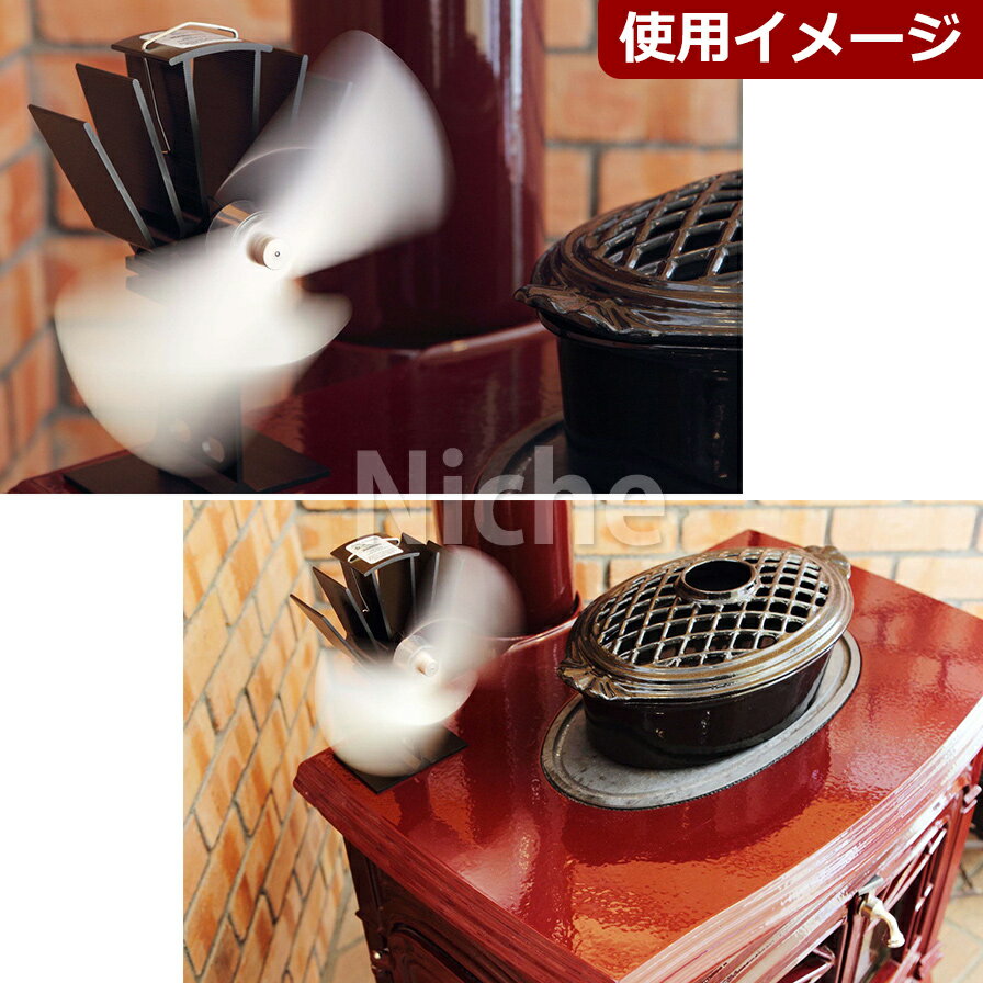 ヒートパワード ストーブファン [ SF-800N ]Heat powered stove fan電力や電池を必要としないエコなファン 「ストーブファン」「ストーブファン」は、薪ストーブの天板に載せるだけで自動でファンが回転する大変ユニークな商品です。 ストーブから出る暖かい空気を室内に循環させ、暖房効率を格段に向上させます。稼動開始温度が約65℃に設定されているため、ストーブの天板に載せておくだけで自動的に稼動・停止状態になりますので、面倒な操作は不要です。また、ストーブの温度に応じてファンの回転速度が自動調整されるため、暖房効率を常に最高の状態に保ちます。輻射式ストーブについては、遠い場所が暖まりにくいというデメリットを解消してくれますので、「ストーブファン」の使用は非常に効果的です。効率的な暖房とエネルギー消費の削減に、「ストーブファン」をご活用ください。■ 仕様[サイズ] W16cm×H21cm×D12cm/羽の長さ 205mm[風量]MAX200立方メートル/h[作動温度]65℃〜345℃[保証期間] 1年間[JAN] 4571375649225 ※こちらの商品には保証書は付属していませんが、発送案内のメールを印刷したものや納品書があれば、保証を受ける事ができます。煙突のすぐ前やストーブの前方付近には置かないでください。写真のように、ストーブ後方の端付近に置くようにしてください。※こちらの商品は輸入品のため、ご購入時期により予告なく仕様変更となる場合があります。予めご了承ください。関連商品一覧別カラー(ストーブファン ブラック)-交換用部品-モーター羽シルバー熱電モジュール最終更新:2019/11[ sapup ]