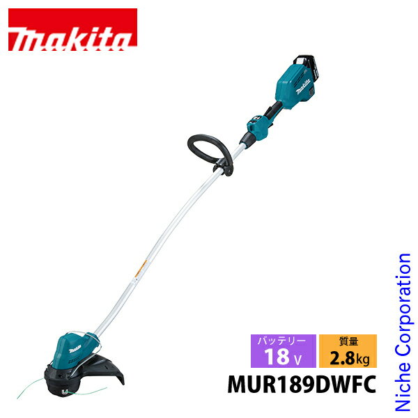 マキタ(makita) 18V 充電式草刈機 ナイロンコード付 バッテリー ・充電器付き[MUR189DWFC]▼ブラシレスモータでパワフル&手軽で安心な「ナイロンコード式」■特長●障害物が多い場所も安心「ナイロンコードタイプ」ナイロンコードで庭木や縁石まわりのキワ刈りにも便利。刈込幅Φ300mm、広い場所も手軽に草刈り。 ●ワンタッチ長さ調整棹の長さはロックスリーブ解除で最大100mmまで簡単に調整可能。ループハンドルも使いやすい位置に素早く調整できます。 ●カーブした棹形状自然な位置で保持でき、狭い場所や足元作業も快適。 ●「楽らくモード」+「カラミトリ機能」付草の密度で自動変速する「楽らくモード」で省エネ&低騒音。「カラミトリ機能」はスイッチ操作で低速逆回転。絡みついた草を簡単除去。 ●ブラシレスモータ採用高トルク+高速回転6,000min-1、小型軽量&パワフルなブラシレスモータを採用。また、刈った草が作業者側に飛びにくい回転方向。 ●先端部は樹脂刃に変更可能(要別販売品)切れ味シャープ。硬い茎の草刈りも可能。硬いものに当たっても反発の少ないスイングバック式。●全ての操作が手元でできる豊富な機能を直感的に操作可能。しかもボタンを押すだけで簡単始動。 ● 防滴・防じん「アプト」※注意:本製品は水や粉じんによる影響が抑えられるように設計されていますが、水や粉じんによって故障しない事を保証するものではありません。 ●おすすめ作業一般家庭の草刈り作業に。 ■その他特長・ソフトブレーキ付で、トリガを離すと、刃物の回転が「スーッ」と停止。・3スピード切替 ■仕様【ハンドル部】形状:ループハンドル【草刈刃】Φ300mm【刈込み方式】ナイロンコード【回転数】 高速:6,000(min-1)(回転/分) 中速:5,000(min-1)(回転/分) 低速:4,000(min-1)(回転/分) 楽らくモード(自動変速):4,000〜6,000(min-1)(回転/分)【電源】直流18V【1充電連続運転時間(無負荷時/目安)】 高速:約32分 中速:約48分 低速:約1時間21分※BL1830B使用時。数値は参考値です。バッテリの充電状態や作業条件により異なります。【本機寸法】長さ1,518〜1,618×幅258×高さ396mm【質量】2.8kg※バッテリ含む、ナイロンコードカッタ、飛散防護カバー、肩掛けバンド等を除く。【標準付属品】 肩掛けバンド 保護メガネ 六角棒スパナ4 六角棒スパナ5 飛散防護カバー ナイロンコードカッタ(タップコード送り出し) アクセサリバッグ バッテリBL1830B(3.0Ah) 充電器DC18WC【機能】 ハイパワーブラシレスモータ:〇 防じん・防水:APT【対応ポータブル電源】PDC01※単電池1個当たりの体積エネルギー密度が400Wh/L未満のため、電気用品安全法の規制対象外となっております。※国内仕様のメーカー純正品です。並行輸入品・互換品・再生品ではございません。※安全に商品をご使用いただくために、マキタ製充電式製品には、マキタ純正のバッテリー・充電器をご使用いただきますようお願いします。なお、当店では模倣品、互換品のバッテリー・電池パック、リサイクル修理されたバッテリー・電池パックのご使用に起因する事故・故障につきましては、一切の責任を負いかねますのでなにとぞご了承ください。【kk9n0d18p】[ マキタ MAKITA 正規販売店 パワーツール 草刈り機 草刈機 刈払い機 刈払機 刈り払い機 充電式 バッテリー式 電動 電動草刈り機 電動草刈機 草刈り 刈払い 刈り払い 草 雑草 土地 空地 庭 畑 農作業 農業 ]2025/01/23