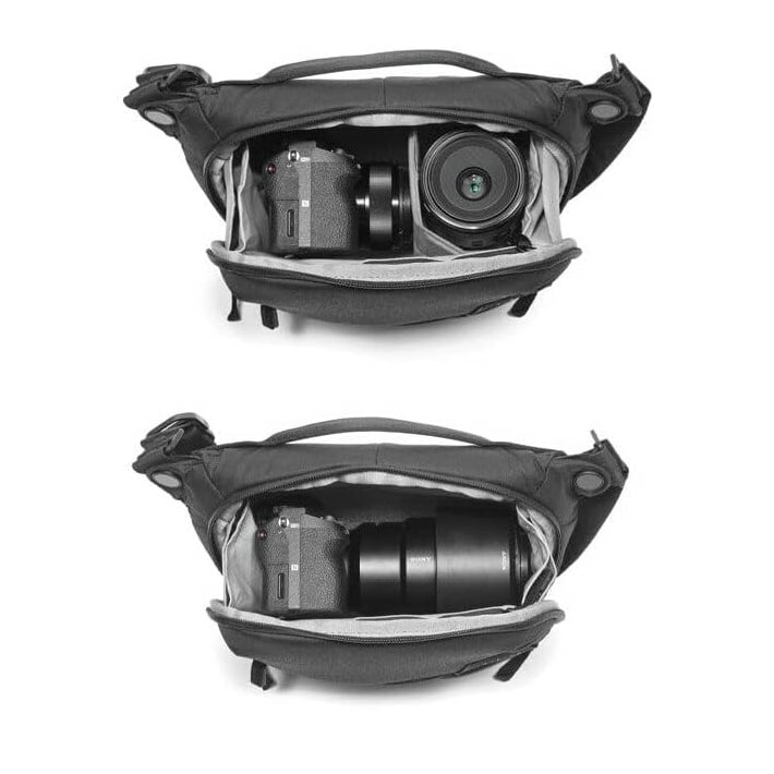 小型・軽量で、機動性に優れたスリングバッグ。コンパクトなミラーレスカメラとレンズなどを収納できます。 クロスボディストラップの取り付け位置を変更することで、ウエストバッグとしても使用できます。 収納例:レンズを装着したミラーレスカメラと、プライムレンズ1本 ※PFASフリー 【サイズ1】 外寸:H19 × W30 × D12cm 【サイズ2】 内寸:H17 × W19 × D8cm 【重量】 550g 【同梱物】 中仕切り(FlexFold™) × 1、ショートエクスターナルキャリーストラップ × 2