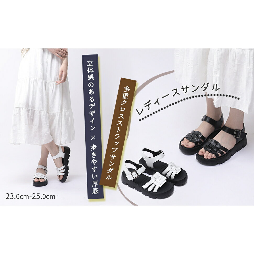 サンダル レディース グルカサンダル おしゃれ ストラップ 編みサンダル4cm 厚底 厚底サンダル 歩きやすい ボリュームソール ブラック 黒 白 軽量 PU 女性 旅行 エスニック カジュアル 23.0cm-25.0cm