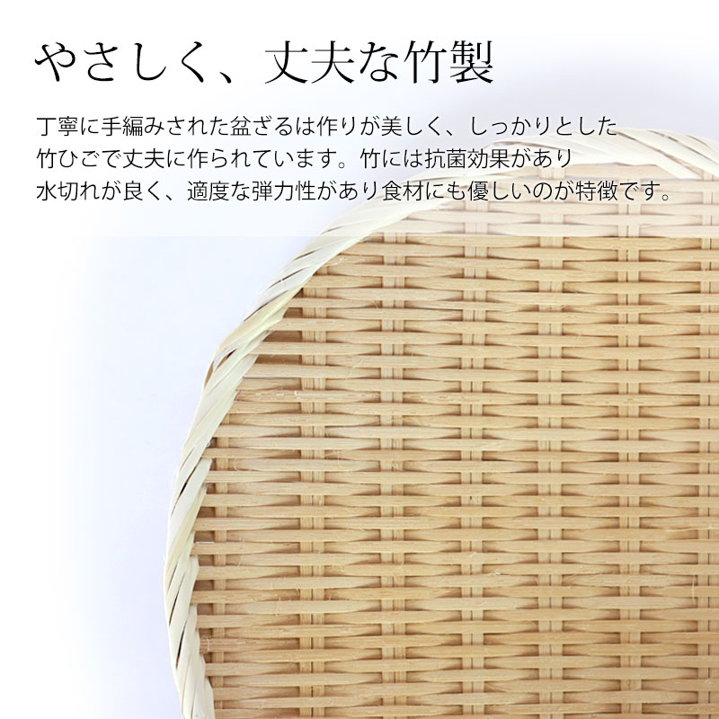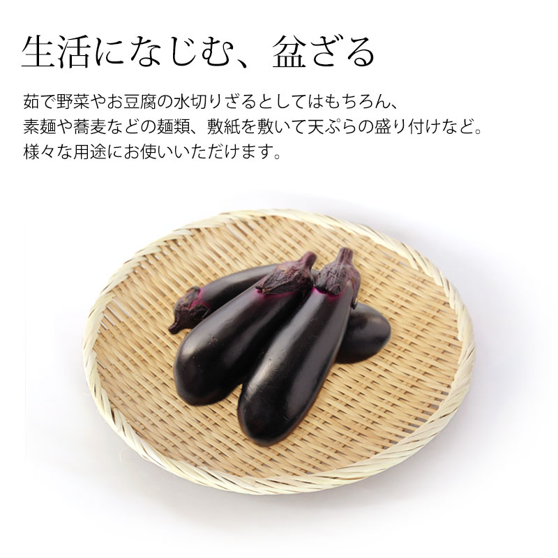 合計金額3,980円以上のお買い上げで送料無料です。 ■商品説明 茹で野菜やお豆腐の水切りざるとしてはもちろん、フルーツや野菜を洗ったり干したり。 様々な用途にお使いいただける直径33cmの盆ざるです。 日本人の生活に昔から身近にあった竹ざる。 丁寧に手編みされた盆ざるは作りが美しく、しっかりとした竹ひごで丈夫に作られています。 竹には抗菌効果があり水切れが良く、適度な弾力性があり食材にも優しいのが特徴です。 そのため、晴れた日の干し野菜づくりや、魚の一夜干しにももってこいです。 耐熱性にも優れていますので、水切り用としてだけではなく、蕎麦やそうめんなどのめん類やお鍋の具材、揚げ物を彩りよく盛り付けてそのままテーブルの上へ。 古風な風情のある佇まいはそのまま出しても見栄えが良く、大人数にもピッタリのサイズ感です。 サイズバリエーションも4サイズございますので、幅広くご利用いただけます。 <干し野菜のすすめ> 太陽の光をたくさん浴びてできる干し野菜は甘みがグンとアップ! うまみもギュッと凝縮、食感も色々に変化してとっても美味しくなります。 水気が抜けているため、短い時間で加熱調理できるのでお財布にも環境にもとっても優しい。 楽しくておいしい干し野菜生活はじめませんか? ■品番 sa-02005 ■サイズ/重量(約) 直径33cm、重さ約170g ■材質 天然竹製、鉄(防錆コーティング済み) ■塗装 無塗装 ■ご購入に関するご注意 ・天然素材を使用し、すべて手編みで手作り品の為、サイズ・重量ともに若干の個体差が生じます。 また、自然素材特有のささくれ、色ムラ等が生じる場合がございます。 ・ご使用後はお湯または水で洗って柔らかい布で拭き取るようにしてください。 ・水に浸け置きはお避け下さい。 ・みがき粉やたわし等は皮膜に傷をつけますので使用しないで下さい。 ・保管の際は火のそばや直射日光の当る場所は避けて収納下さい。 ・直火、電子レンジ、オーブン、食洗機、食器乾燥機等にはご使用できません。 ・モニター、ディスプレイによっては写り方が変わります。 予めご了承くださいませ。 ご用途など結婚祝い お祝い 御祝 内祝 内祝い 父の日 母の日 敬老の日 お祝い返し ウェディングギフト ブライダルギフト 贈り物 引き出物 引出物 結婚 内祝い 出産 命名 ギフト セット 詰め合わせ 贈答品 記念日 販促物 ノベルティ 誕生日 クリスマス お正月 新学期 新生活 記念品 卒業記念品 お返し お礼 御礼 ごあいさつ ご挨拶 御挨拶 プレゼント お見舞い お餞別 引越しご挨拶 入園 入学祝い 卒園祝い 卒業祝い 就職祝い 新築祝い 引越し祝い 快気祝い 開店祝い 二次会 披露宴 結婚式 出産祝い 初節句 七五三 成人式 昇進祝い 新築 上棟 引っ越し 引越し祝い 開店 退職 快気 全快祝い 初老 還暦 古稀 喜寿 傘寿 米寿 卒寿 白寿 長寿 金婚式 銀婚式 ダイヤモンド婚式 結婚記念日 木婚式 定年 景品 賞品 粗品 法事 忌明け 四十九日 初盆 お中元 御中元 お歳暮 御歳暮 お年賀 御年賀年始挨拶 キッチン雑貨 食器 切干大根 干し椎茸 干ししいたけ ドライフード ドライフルーツ 干物 一夜干し 干し梅 みよし漆器本舗 みよし漆器 三好漆器 ポイント消化 ブラックフライデー 2025商品詳細 商品説明 茹で野菜やお豆腐の水切りざるとしてはもちろん、フルーツや野菜を洗ったり干したり。 様々な用途にお使いいただける直径33cmの盆ざるです。 日本人の生活に昔から身近にあった竹ざる。 丁寧に手編みされた盆ざるは作りが美しく、しっかりとした竹ひごで丈夫に作られています。 竹には抗菌効果があり水切れが良く、適度な弾力性があり食材にも優しいのが特徴です。 そのため、晴れた日の干し野菜づくりや、魚の一夜干しにももってこいです。 耐熱性にも優れていますので、水切り用としてだけではなく、蕎麦やそうめんなどのめん類やお鍋の具材、揚げ物を彩りよく盛り付けてそのままテーブルの上へ。 古風な風情のある佇まいはそのまま出しても見栄えが良く、大人数にもピッタリのサイズ感です。 サイズバリエーションも4サイズございますので、幅広くご利用いただけます。 <干し野菜のすすめ> 太陽の光をたくさん浴びてできる干し野菜は甘みがグンとアップ! うまみもギュッと凝縮、食感も色々に変化してとっても美味しくなります。 水気が抜けているため、短い時間で加熱調理できるのでお財布にも環境にもとっても優しい。 楽しくておいしい干し野菜生活はじめませんか? サイズ/重量(約) 直径33cm、重さ約170g 材質 天然竹製、鉄(防錆コーティング済み) 塗装 無塗装 ご購入に関するご注意 ・天然素材を使用し、すべて手編みで手作り品の為、サイズ・重量ともに若干の個体差が生じます。 また、自然素材特有のささくれ、色ムラ等が生じる場合がございます。 ・ご使用後はお湯または水で洗って柔らかい布で拭き取るようにしてください。 ・水に浸け置きはお避け下さい。 ・みがき粉やたわし等は皮膜に傷をつけますので使用しないで下さ