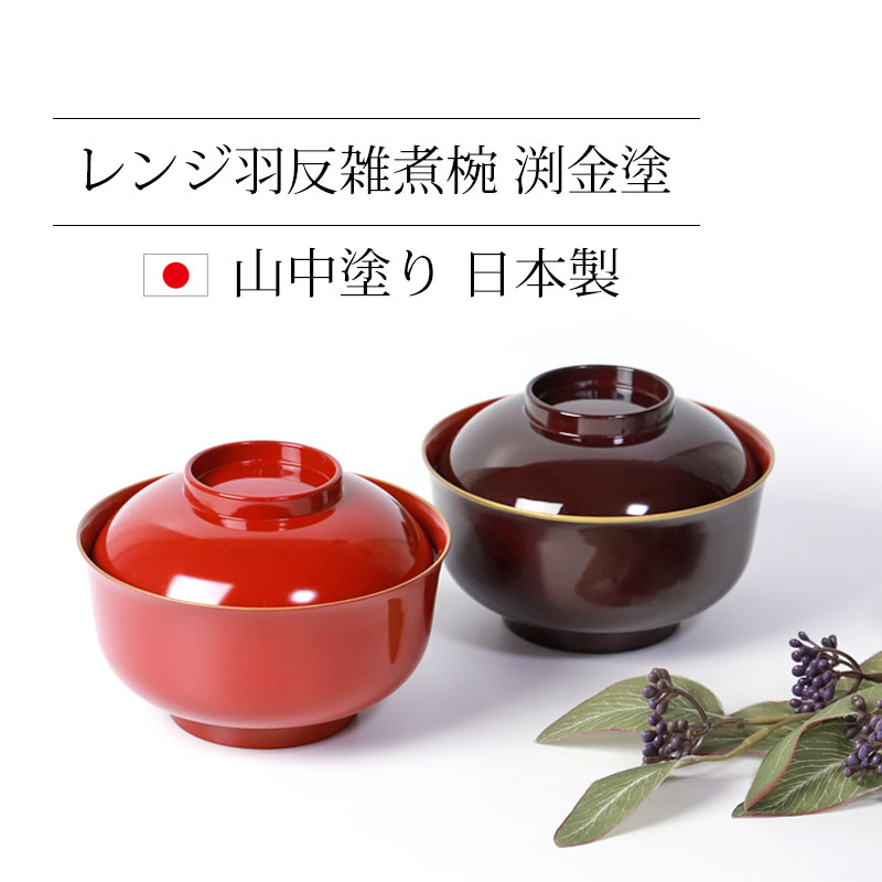 【最大300円クーポン有】 蓋付き 羽反 雑煮椀 おしゃれ 電子レンジ対応 食洗機対応 14cm レンジ羽反雑煮椀 渕金塗 お雑煮 椀 汁椀 お椀 フタ付き 日本製 国産 山中塗 山中漆器 朱 溜 おわん 味噌汁 お吸い物 内祝い 正月 お祝い おせち
