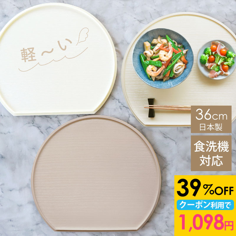 【39%OFFクーポン 27日1:59まで】 半月盆 36cm 食洗機対応 滑り止め 加工 軽量 お盆 トレー 北欧風 洗える リバーシブル 両面仕様 日本製 おしゃれ かわいい 半月膳 おぼん トレイ お膳 木目 ナチュラル ランチョンマット ホワイト エクリュ グレージュ