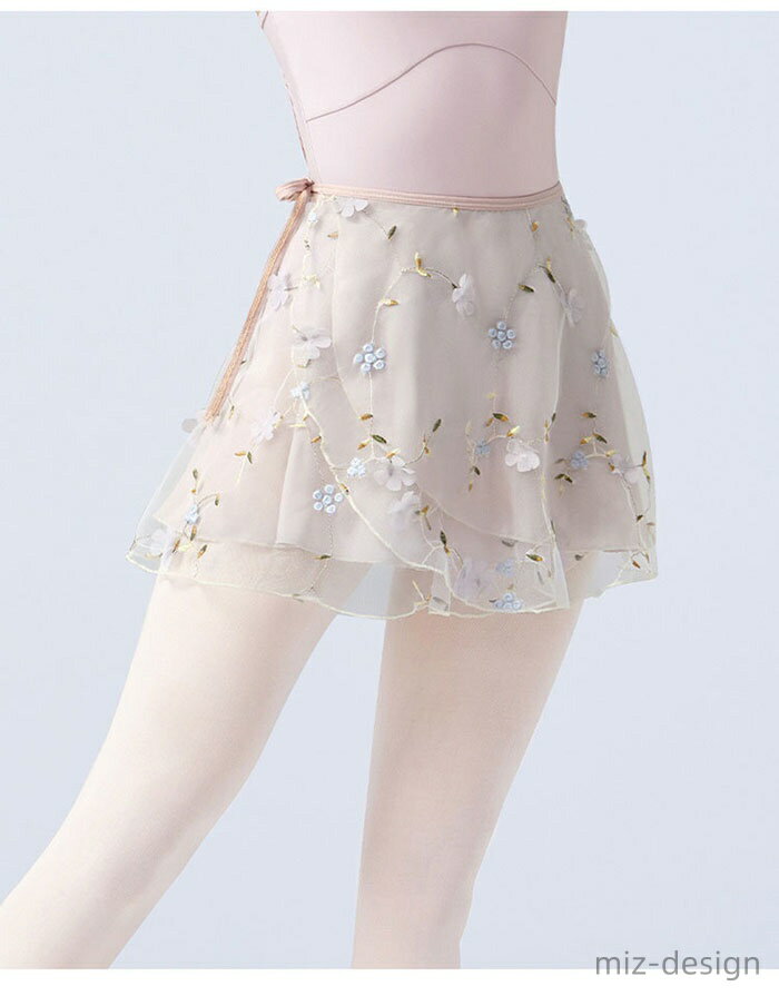 【送料無料】バレエ スカート ジュニア 大人用 巻きスカート 34cm丈 紐 可愛い 花柄刺しゅう レッスン着 レッスンウエア ダンススカート おしゃれ バレエ巻きスカート
