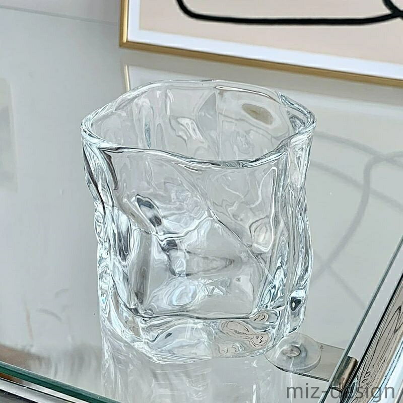【送料無料】北欧風 おしゃれ クリスタル ストレス解消 不規則 ガラス 透明 クリア 300ml 2個セット 清酒 日本酒 ビアグラス 焼酎 グラス