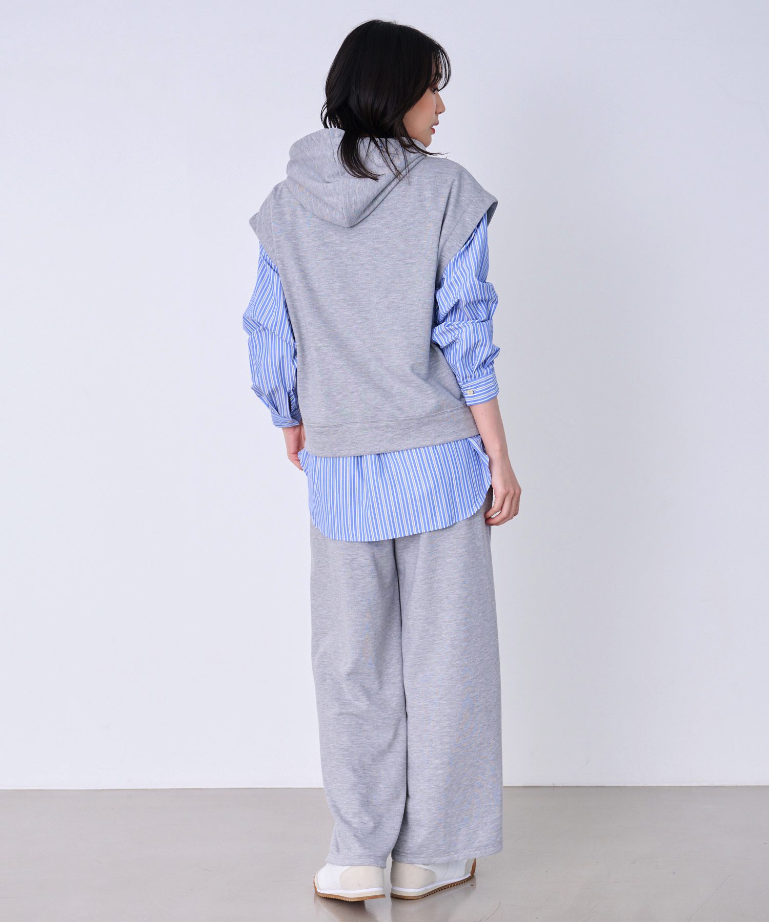 【公式】 セール 30%OFF アーノルドパーマー パーカーベスト + シャツ レイヤードセット レディース ブラック 杢グレー グレイッシュベージュ シンプル カジュアル 秋 冬 ママ 仕事 通勤 通学 公園 デイリー ストライプ レイヤード 着回し 25aw