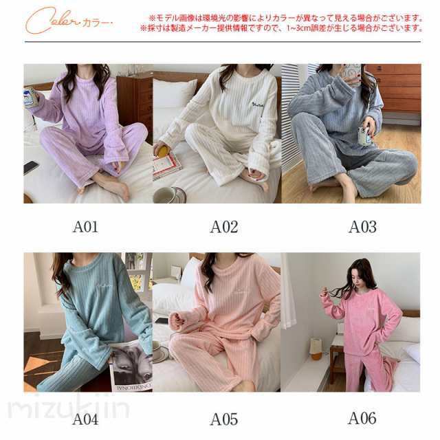 パジャマ レディース ルームウェア セットアップ 裏ボア 裏起毛 秋 冬 寝巻き 長袖 上下セット ロングパンツ 部屋着 寝間着