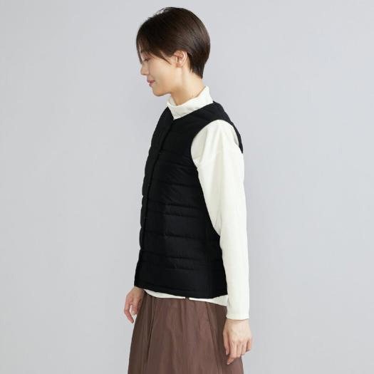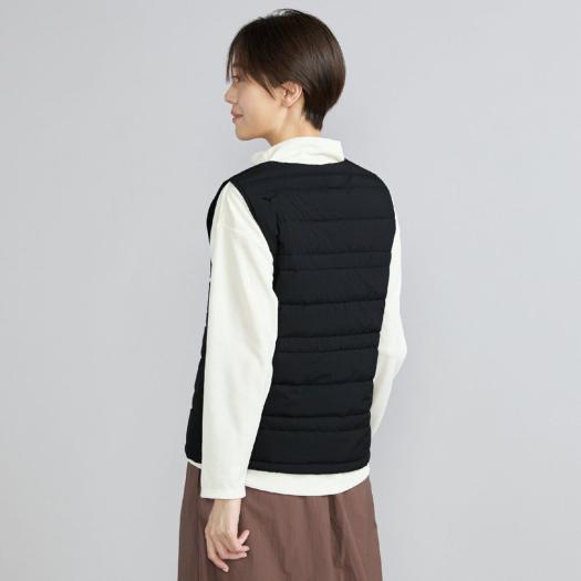 【商品仕様】サイズS、M、Lカラー09:ブラック53:モカベージュ67:ミッドナイトプラム素材表地:ナイロン100%裏地:ナイロン100%中綿:ダウン90%、フェザー10%身頃上部芯地:合成繊維(ブレスサーモ)65%、ナイロン35%原産国ベトナム製サイズについて<商品の実寸(商品の仕上がり寸法)>後丈:S/56cm、M/58cm、L/60cm胸回り:S/95cm、M/98cm、L/101cm肩幅:S/35.8cm、M/37cm、L/38.2cm■サイズ表記について発売シーズン2024年秋冬【サイズ】■適合サイズ表はこちら小さく収納して持ち歩きに便利なコンパクトシリーズのダウンベストです。ブレスサーモ使用であったか設計。寒暖差のある1日、また屋外と室内など温度に応じて着脱してコンパクトに持ち歩けます。ノーカラーなので重ね着もし易く、マフラーやネックウォーマーとも合わせやすいデザインです。■ミドラーにも着用できるサイズ感のレギュラーシルエット。■650フィルパワーの羽毛を充填。■両脇ポケット付き。■収納袋付き。【ブレスサーモ】吸湿発熱素材「ブレスサーモ」は、人体から発生する水分を吸収して発熱効果をもたらす新しい保温メカニズムを実現させました。ブレスサーモの吸湿発熱した空気を繊維間に取りこみ保温する為、衣服内をドライで温かな状態にします。-------------------メーカー希望小売価格はメーカーカタログに基づいて掲載しています。202409MRB2MEB70309本商品は別バリエーションも取り揃えております。 2枚目、3枚目の商品画像は別カラーの参考写真が掲載されている場合がございます。