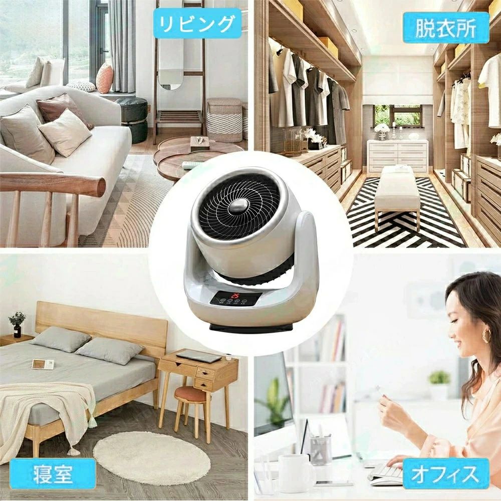 商品情報【製品仕様】 製品寸法:通常版18.5*14.5*23cm/進化版23*18*28cm パッケージサイズ:28*22*30.8cm 製品重量:1.3kg/1.7kg 素材:難燃性ABS、難燃性ナイロン、PP 定格電圧:100~110V 製品周波数:50~60Hz 段階調整:自然風12W、低温風1000W、高温風1500W(3段階) 【適応場所】 店舗 ヘアサロン 美容室 理髪店 飲食店 居酒屋 レストラン カフェ バル バー ダイニングバー ホテル モデルハウス 喫茶店 ビジネスホテル 食堂 エステティックサロン ネイルサロン アパレルショップ 本屋 美術館 博物館 雑貨ショップ セレクトショップ インテリアショップ ヒーリングサロン コーヒーショップ 【関連キーワード】 サーキュレーター 首振り扇風機 空気循環 卓上扇風機 扇風機 換気 梅雨 部屋干し 回転 冷房 暖房 エアコン クーラー 扇風器 ECO 省エネ おしゃれ リモコン 静音 3モード タイマー機能付き タッチパネル 熱中症対策 【DCモーター搭載&静音・省エネ】 優れたDCモーターを搭載したサーキュレーターは制御がしやすく、小型で高効率・高トルクと、細やかな風量調整が可能。DCモーター搭載で省エネを実現し、パワフルなのに騒音値は????以下と静音性にも優れているので就寝時の使用もおすすめ。また、低回転でも動作するので、低消費電力で運転できるのも特徴。?1時間あたり最低12?(高モード1500W)の電力を消費する製品の場合、全国家庭電気製品公正取引協議会が規定した電気料金の目安である27円/kWhを参考として、1時間あたりは約0.28円、??時間では僅か6.72円での使用が可能です。 【左右自動首振り&24畳・四季対応】 サーキュレーターは左右合計90°の自動首振り機能と上下45°の角度調節機能を搭載。※上下の角度調整は手動となっております。直進性のある強い風を送り出すことにより、?4畳の室内の空気を効率的に動かします。?梅雨時などは、部屋干しの洗濯物の乾燥にも便利。冷暖房とともに使うことで室温を均一に近づけたり、窓の近くに置くことで換気の効率を向上したりといった効果が期待できます。空気の流れを作ることを目的に作られているので、オールシーズンを通して使え 【タイマー機能&リモコン付き】 オン/オフタイマーが付いており、1〜12時間まで幅広く調整できる。起床時間や帰宅時間に合わせた空気の循環が可能、就寝時の冷え過ぎ防止などにも活用できます。??広い部屋で使いたい場合でもリモコン操作に対応していると便利。妊娠している方や高齢者など体を屈めて操作するのが難しい方なども、リモコンで操作できると安心です。 【3モード&パワフル送風】 3段階の調整に対応し、静音で心地よい微風も、特殊形状のスパイラルグリルを採用し、約?.??先まで届く強力な送風を実現。?扇風機に比べて風を送れる範囲は狭めですが、真上に風を送れるモデルも多く、冷暖房使用時の温度ムラの解消にも便利です。数分強運転を行うことで室内に気流が生まれ、室内の空気をしっかりと循環させられます。