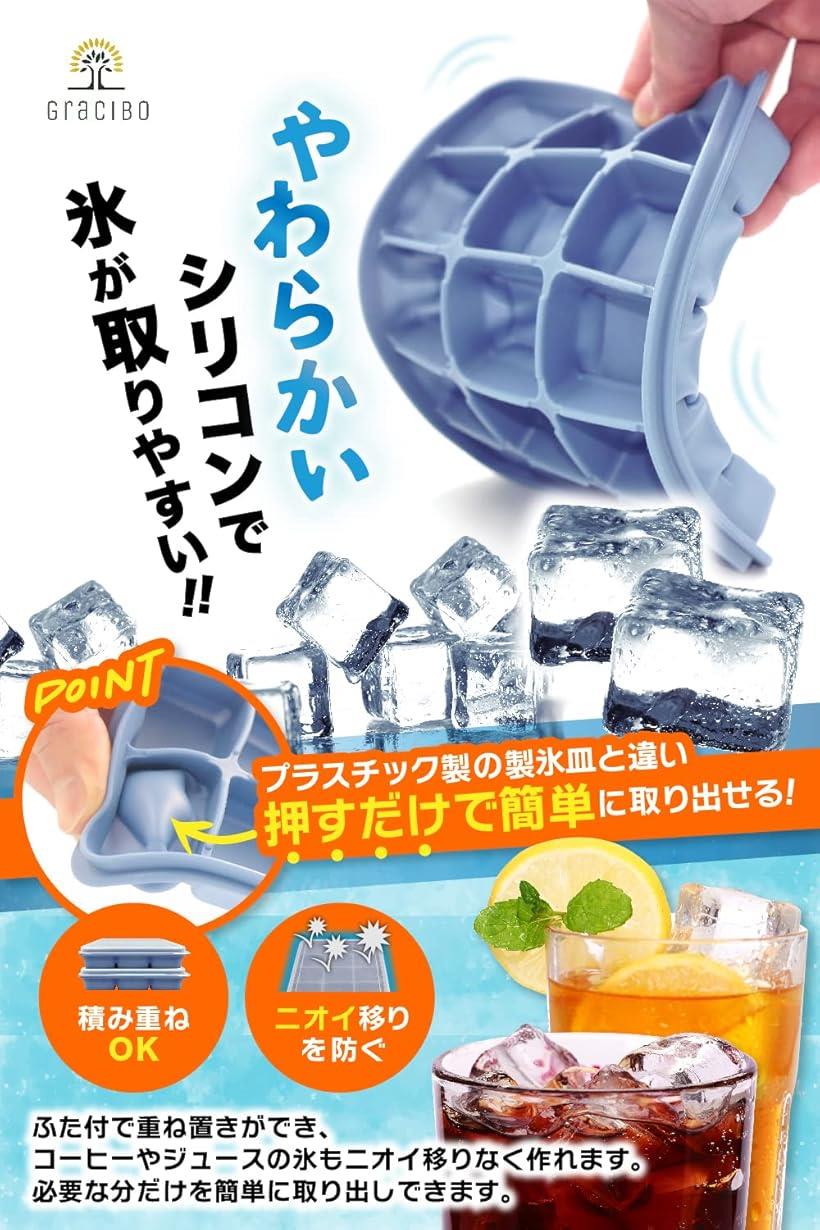 【楽天ランキング1位入賞】製氷皿 シリコン製 ケース ふた付き アイストレー やわらかく氷が取りやすい 省スペーストレー 標準サイズの氷 大きいサイズの氷 丸い氷