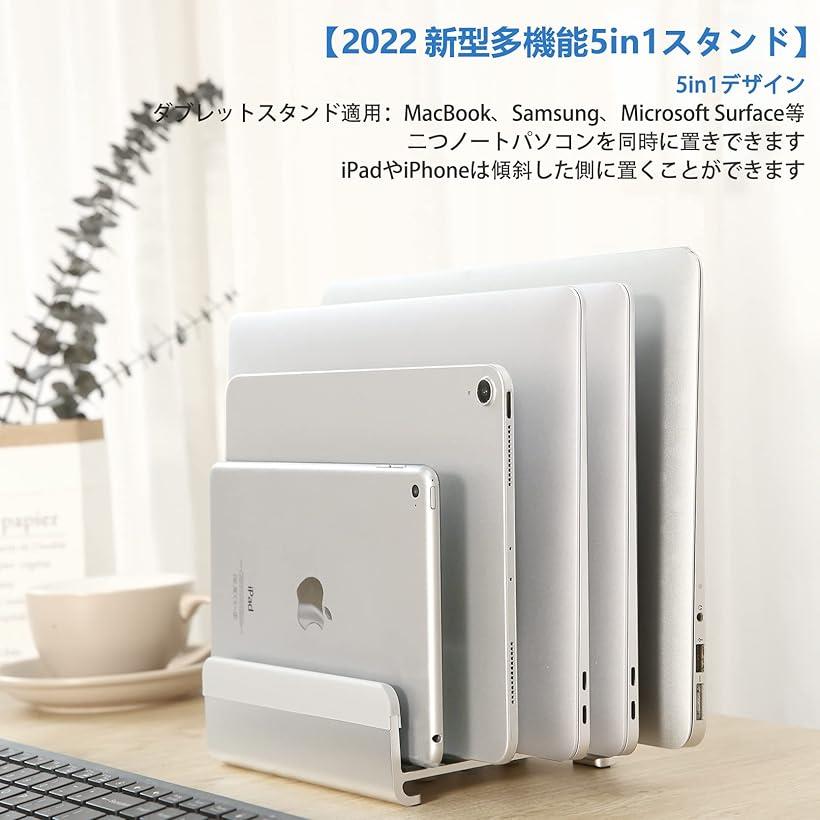 【楽天ランキング1位入賞】縦置き 最大5台 デバイス 収納 ノートパソコンスタンド 調節可能 銀
