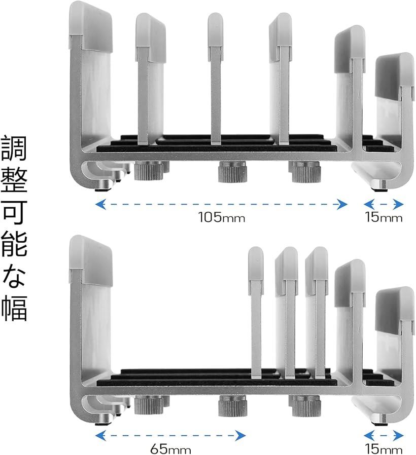 「5台まで収納可能」最大5台のデバイスが収納可能な設計で、任意の幅に調節することができます。ノートパソコン、ipad、書籍、Switchなど、さまざまな機器を一箇所にまとめて、デスク上の作業スペースを有効に活用することができます。「保護と安定性」アルミにアルマイト処理を施し、傷がつきにくく、耐久性に優れています。無毒のシリコンマットは、デバイスを傷から守り、安定した位置に固定します「幅調整」調節範囲:10 mm~65 mm工具不要で、製品下部のネジを回すだけで、適切な幅に調節することができます「省スペース」デバイスを縦に並べて、机の上をすっきり整理整頓ができます※ 他ネットショップでも併売しているため、ご注文後に在庫切れとなる場合があります。予めご了承ください。※ 品薄または希少等の理由により、参考価格よりも高い価格で販売されている場合があります。ご注文の際には必ず販売価格をご確認ください。※ 沖縄県、離島または一部地域の場合、別途送料の負担をお願いする場合があります。予めご了承ください。※ お使いのモニタにより写真の色が実際の商品の色と異なる場合や、イメージに差異が生じることがあります。予めご了承ください。※ 商品の詳細(カラー・数量・サイズ 等)については、ページ内の商品説明をご確認のうえ、ご注文ください。※ モバイル版・スマホ版ページでは、お使いの端末によっては一部の情報が表示されないことがあります。すべての記載情報をご確認するには、PC版ページをご覧ください。縦置き型ノートパソコンスタンド「アップグレード版」5台のデバイスを収納可能 縦置き型ノートパソコンスタンドは、デスク周りの整理整頓にぴったりのアイテムです。うっかり水やコーヒーを溢してしまったとしても、スタンドに立ててさえいれば、水没させることなく大事なデバイスを守ることができます。素材は耐久性の高いアルマイト加工を施したアルミニウムを使用。ノートパソコンやタブレットを収納するのに十分な重さがあり、ひっくり返る心配もありません。スタイリッシュなデザインで、作業スペースをおしゃれに演出してくれます。