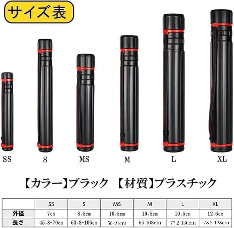 ポスター、図面やカードゲームのプレイマットなど折り曲げたくないものを丸めて収納できる筒型ポスターケースです。賞状、絵画作品、背景シート、などの収納に役立つ。長さが伸縮する製図ケースです。丈夫なプラスチック製ハードケースです。長さはそれぞれ30cm前後伸縮可能で、お好きな長さに調節、固定ができます。蓋とショルダーベルトがつながっているので蓋の紛失の心配がありません。ショルダーベルトは長さ調節でき、肩掛け、斜め掛けでお持ちいただけます。直径、長さの違う6タイプをご用意しました。大切な図面や資料、作品の防汚、折り皺防止に役立つ図面ケースです。「カラー」ブラック「材質」プラスチック「サイズ」SS:外径7cmx長さ45.8~70cm、S:外径8.5cmx長さ63.8~106cm、MS:外径10.5cmx長さ56~91cmM:外径10.5cmx長さ65~108cm、L:外径10.5cmx長さ77.2~130cm、XL:外径12.6cmx長さ78.2~128cm *内径は、外径より約0.5~1cm小さくなります。※ 他ネットショップでも併売しているため、ご注文後に在庫切れとなる場合があります。予めご了承ください。※ 品薄または希少等の理由により、参考価格よりも高い価格で販売されている場合があります。ご注文の際には必ず販売価格をご確認ください。※ 沖縄県、離島または一部地域の場合、別途送料の負担をお願いする場合があります。予めご了承ください。※ お使いのモニタにより写真の色が実際の商品の色と異なる場合や、イメージに差異が生じることがあります。予めご了承ください。※ 商品の詳細(カラー・数量・サイズ 等)については、ページ内の商品説明をご確認のうえ、ご注文ください。※ モバイル版・スマホ版ページでは、お使いの端末によっては一部の情報が表示されないことがあります。すべての記載情報をご確認するには、PC版ページをご覧ください。[FUPUONE] ポスターケース 図面ケース アジャスターケース 製図 プラスチックケースポスター、図面やカードゲームのプレイマットなど折り曲げたくないものを丸めて収納できる筒型ポスターケースです。賞状、絵画作品、背景シート、釣り竿などの持ち運び、収納に。長さが伸縮する防水アジャスターケースです。丈夫なプラスチック製ハードケースです。長さはそれぞれ30cm前後伸縮可能で、お好きな長さに調節、固定ができます。蓋とショルダーベルトがつながっているので蓋の紛失の心配がありません。ショルダーベルトは長さ調節でき、肩掛け、斜め掛けでお持ちいただけます。直径、長さの違う6タイプをご用意しました。大切な図面や資料、作品の防汚、折り皺防止に役立つ図面ケースです。「カラー」ブラック「材質」プラスチック「サイズ」SS:直径7cmx長さ45.8~70cm、S:直径8.5cmx長さ63.8~106cm、MS:直径10.5cmx長さ56~91cm、M:直径10.5cmx長さ65~108cm、L:直径10.5cmx長さ77.2~130cm、XL:直径12.6cmx長さ78.2~128cm