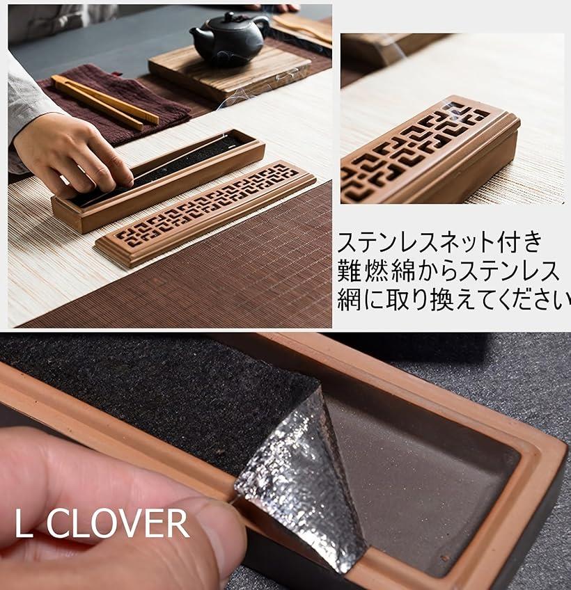 【楽天ランキング1位入賞】L CLOVER 線香 横置き 蓋付き 網 ステンレスネット 仏壇 香炉 線香立て お香立て インセンスホルダー 線香皿 陶器 ダークブラウン グリーン ライトブラウン