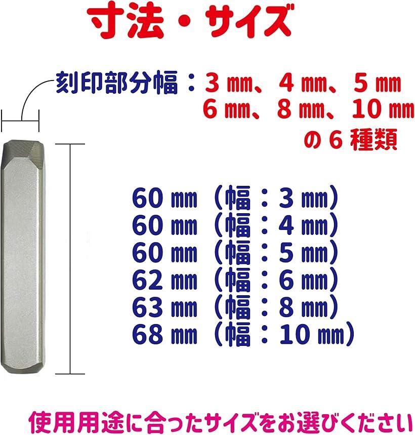 ・「取扱簡単」ハンマーで打刻印をたたくだけで皮革や鉄、シルバー、銅、真鍮、アルミなどの軟質金属に刻印できます。・「安全保管」アルファベットと数字の打刻印を別々のケースを付属しております。・「セット内容」数字(0~9)、アルファベット(A~Z、&) 長さ:60mm~68mm 素材:鋼・「お好きなサイズから」サイズバリエーション:3mm、4mm、5mm、6mm、8mm、10mmのサイズから用途に合ったサイズをお選びください。*錆止めの為、油が塗ってあります。※ 他ネットショップでも併売しているため、ご注文後に在庫切れとなる場合があります。予めご了承ください。※ 品薄または希少等の理由により、参考価格よりも高い価格で販売されている場合があります。ご注文の際には必ず販売価格をご確認ください。※ 沖縄県、離島または一部地域の場合、別途送料の負担をお願いする場合があります。予めご了承ください。※ お使いのモニタにより写真の色が実際の商品の色と異なる場合や、イメージに差異が生じることがあります。予めご了承ください。※ 商品の詳細(カラー・数量・サイズ 等)については、ページ内の商品説明をご確認のうえ、ご注文ください。※ モバイル版・スマホ版ページでは、お使いの端末によっては一部の情報が表示されないことがあります。すべての記載情報をご確認するには、PC版ページをご覧ください。刻印セット打刻印ポンチアルファベット数字英字レザークラフトカービング手作りDIY用「取扱簡単」ハンマーで打刻印をたたくだけで皮革や鉄、シルバー、銅、真鍮、アルミなどの軟質金属に刻印できます。「安全保管」アルファベットと数字の打刻印を別々のケースを付属しております。「セット内容」数字(0~9)、英字アルファベット(A~Z、&)長さ:60mm~68mm素材:鋼「お好きなサイズから」サイズバリエーション:3mm、4mm、5mm、6mm、8mm、10mmのサイズから用途に合ったサイズをお選びください。*錆止めの為、油が塗ってあります。