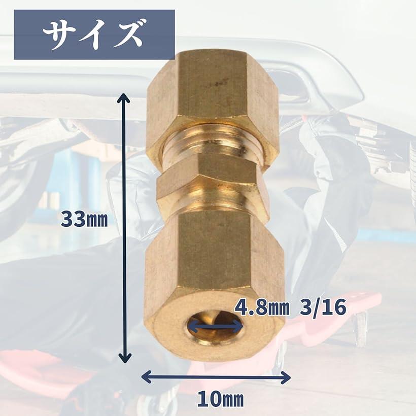 3/16(直径4.8mm)サイズのブレーキパイプ同士の補修ジョイントフィッティングパイプフレア加工不要。特殊なフレアリングツールを準備する必要がありません。ナットの締め込みで中の固定リングが食い込みパイプ形状にフィットし固定されます。*注意 一度ナットを締めこむと中の固定リングが潰れて再利用できません。※ 他ネットショップでも併売しているため、ご注文後に在庫切れとなる場合があります。予めご了承ください。※ 品薄または希少等の理由により、参考価格よりも高い価格で販売されている場合があります。ご注文の際には必ず販売価格をご確認ください。※ 沖縄県、離島または一部地域の場合、別途送料の負担をお願いする場合があります。予めご了承ください。※ お使いのモニタにより写真の色が実際の商品の色と異なる場合や、イメージに差異が生じることがあります。予めご了承ください。※ 商品の詳細(カラー・数量・サイズ 等)については、ページ内の商品説明をご確認のうえ、ご注文ください。※ モバイル版・スマホ版ページでは、お使いの端末によっては一部の情報が表示されないことがあります。すべての記載情報をご確認するには、PC版ページをご覧ください。