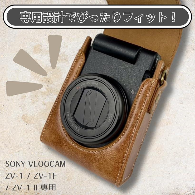 【楽天ランキング1位入賞】カメラケース SONY ソニー VLOGCAM ZV-1 / ZV-1F ZV-1II レトロ レザー バッグ ZV1 軽量 おしゃれ 衝撃吸収 傷防止 ショルダーストラップ付き キャメル