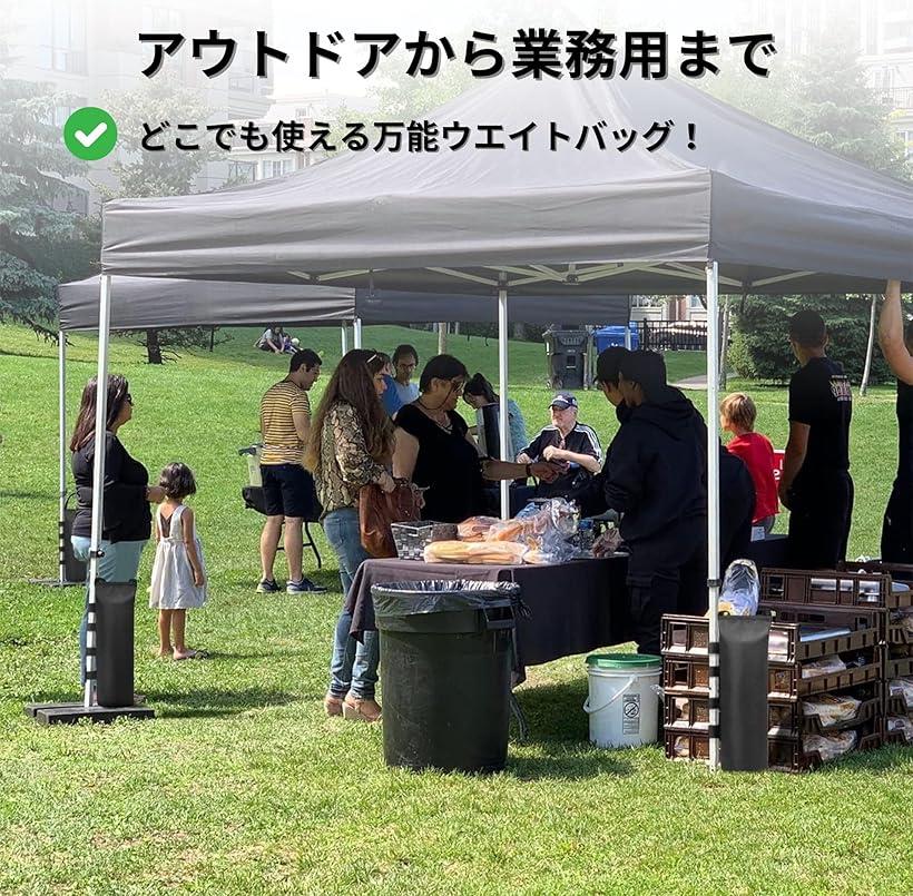 (タープテント用ウェイトバッグで安定性を強化)このウェイトバッグは、風が強い日でもテントやタープをしっかり固定する必需品です。タープテントやサンアンブレラスタンドベースに最適で、キャンプやガーデンパーティー、屋外イベントで大活躍します。砂、石、水を入れて簡単に設置でき、風や悪天候でも安定感を提供します。(サンドバッグ式おもりで簡単設置)このサンドバッグ式ウェイトは、砂や石を入れてテントやパラソルを固定するのに非常に便利です。設置が簡単で、ビーチやキャンプ場、ガーデンでのイベントやバーベキューなど、さまざまなアウトドアシーンに最適です。(高耐久素材のマルチウエイトバッグで安定性を提供)この高品質素材のウェイトサンドバッグは、優れた耐久性でテントやタープを長時間支えます。特に強風や悪天候時においても信頼できる固定力を発揮し、アウトドアをより安心して楽しめます。(コンパクトに収納)使用後は砂を抜いて軽量化でき、コンパクトに収納できるのが特徴です。キャンプやフェスティバル、ビーチイベントなど、さまざまなシーンで活躍し、持ち運びも非常に便利です。多用途に使えるこのウェイトは、アウトドア愛好者やイベント主催者にとって理想的な選択です。(注意事項)本製品には説明書が付属しておりません。ご使用の際に発生した損害や事故に関して、一切の責任を負いかねます。安全にご利用いただくためにも、お客様ご自身で十分ご注意のうえ、慎重に取り扱いをお願い申し上げます。※ 他ネットショップでも併売しているため、ご注文後に在庫切れとなる場合があります。予めご了承ください。※ 品薄または希少等の理由により、参考価格よりも高い価格で販売されている場合があります。ご注文の際には必ず販売価格をご確認ください。※ 沖縄県、離島または一部地域の場合、別途送料の負担をお願いする場合があります。予めご了承ください。※ お使いのモニタにより写真の色が実際の商品の色と異なる場合や、イメージに差異が生じることがあります。予めご了承ください。※ 商品の詳細(カラー・数量・サイズ 等)については、ページ内の商品説明をご確認のうえ、ご注文ください。※ モバイル版・スマホ版ページでは、お使いの端末によっては一部の情報が表示されないことがあります。すべての記載情報をご確認するには、PC版ページをご覧ください。