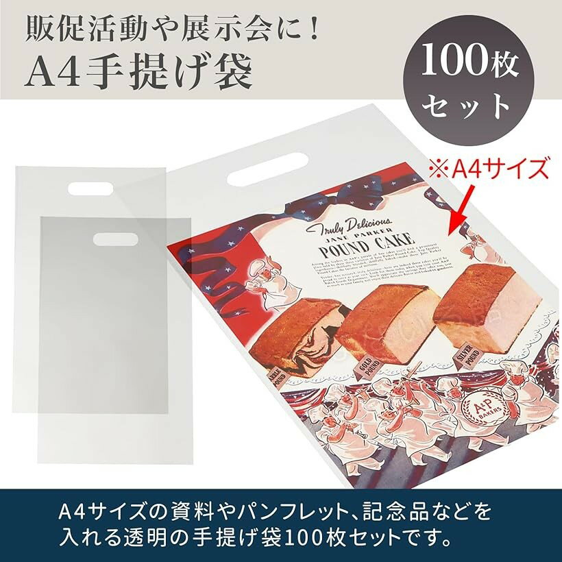 【楽天ランキング1位入賞】透明 手提げ袋 100枚セット A4サイズ 配布用 展示会 販促 営業 イベント チラシ パンフレット カタログ ノベルティ