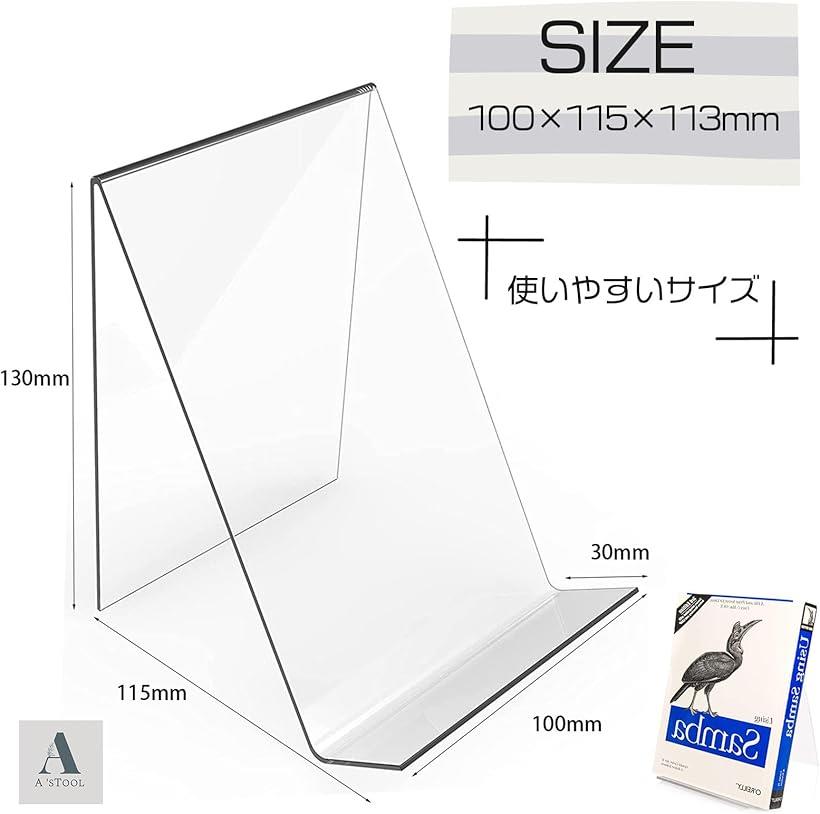 「商品詳細」 サイズ:高さ130mm(13cm)/ 横幅100mm(10cm)/奥行115mm(11.5cm) 素材:アクリル 6個セットまたは8個セット「高い透明度」透明度の高い美しいアクリル素材を使ったクリアブックスタンドです。滑らかなエッジのフォルムが美しく、高級感があります。「展示品を目立たせるシンプル設計」CDやDVDの展示、本や携帯電話、財布や小物類など、販売物を目立たせて展示するシンプルなディスプレイスタンドです。「ご使用前の注意」輸送時の傷を防ぎため、白色不透明の保護フィルムが貼られています。(ロットにより透明保護フィルムが貼られている場合があります)「推しグッズやトレカのディスプレイに」書店での展示や、店舗などでの商品ディスプレイ、展示会、メニュー置きとしては勿論、人気のトレーディングカードや、推し活グッズなど、様々なディスプレイに使えます。「倒れにくい」展示品が倒れにくい角度設計。N字フォルムの傾斜は商品がズレにくい90度です。「厚みのあるしっかりとした材質」厚みに高級感を感じる、透明度の高いアクリルスタンドです。「どんなインテリアにも馴染む」クリアー素材なので、インテリアの邪魔をしません。透明性は視覚的なクリーンさと空間感を提供し、製品を引き立たせます。「末長くお使いいただけます」美しさ、耐久性、柔軟性を兼ね備えており、さまざまな用途に適しています。「6個セットor8個セット」6個セットまたは、8個セットの同一サイズ、複数セット販売です。※ 他ネットショップでも併売しているため、ご注文後に在庫切れとなる場合があります。予めご了承ください。※ 品薄または希少等の理由により、参考価格よりも高い価格で販売されている場合があります。ご注文の際には必ず販売価格をご確認ください。※ 沖縄県、離島または一部地域の場合、別途送料の負担をお願いする場合があります。予めご了承ください。※ お使いのモニタにより写真の色が実際の商品の色と異なる場合や、イメージに差異が生じることがあります。予めご了承ください。※ 商品の詳細(カラー・数量・サイズ 等)については、ページ内の商品説明をご確認のうえ、ご注文ください。※ モバイル版・スマホ版ページでは、お使いの端末によっては一部の情報が表示されないことがあります。すべての記載情報をご確認するには、PC版ページをご覧ください。