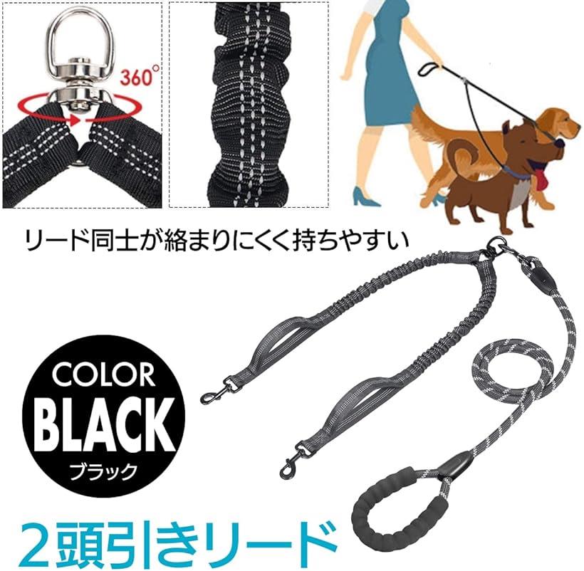 【楽天ランキング1位入賞】2匹の犬のリード 2頭引きリード ツインリード ダブルリード クッションコード 負担軽減 ブルー レッド ピンク ブラック