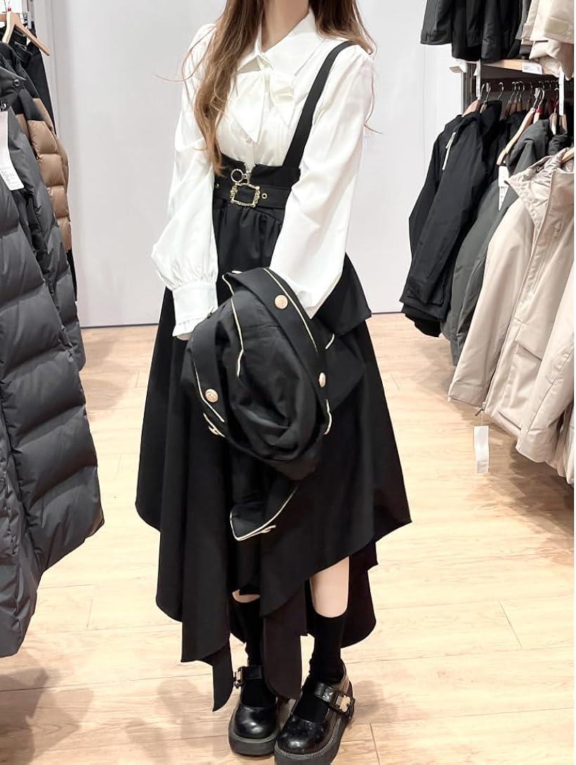 「こだわりのデザイン」「Lady Lazy」から登場するゴシック・ロリータアイテムは、クラシカルな美しさとエッジが効いたデザインが魅力です。襟とリボン付きの長袖ブラウスとアシンメトリースカートがセットになったこのアイテムは、上品さとダークな魅力を兼ね備えた地雷系スタイルを表現。ハイウエストデザインでスタイルアップ効果も抜群、ロング丈で優雅さを演出しつつ、ブラックカラーが大人のゴスロリスタイルにぴったりです。S・M・Lのサイズ展開で、撮影やコスプレにも最適。ミリタリーテイストを感じさせる軍服風のディテールもポイントで、クラシックロリータファッションに新しい個性をプラスします。細部までこだわったディテールで、シーンに合わせた多様なスタイリングが楽しめます。ハイウエストデザインでスタイルアップ効果も抜群、ロング丈で優雅さを演出しつつ、ブラックカラーが大人のゴスロリスタイルにぴったりです。「ブラウスサイズ」 S: バスト88cm/肩幅37cm/着丈46cm/袖丈62cm、 M: バスト92cm/肩幅38cm/着丈50cm/袖丈63cm、 L: バスト96cm/肩幅39cm/着丈54cm/袖丈64cm 「サイズ」フリーサイズ(着丈84cm/目安体重40-60kg/S-XLサイズ相当)「スカートサイズ」 S: ウエスト62-82cm/裾丈52-82cm、 M: ウエスト66-86cm/裾丈52-82cm、 L: ウエスト70-90cm/裾丈52-82cm「セット内容」ブラウス+スカート(2点セット) 「素材構成」ポリエステル100% *セット品以外の衣類や小物類は全て付属しませんLady Lazyではゴスロリファッションや地雷系アイテムが充実しています。ワンピースやドレス、ロングスカートなど、様々なスタイルが揃っています。女装やハロウィンのコスプレにもぴったりなアイテムが多数あります。また、ロリータワンピースやパニエ、ヘッドドレスなどのアクセサリーも豊富に取り揃えています。黒やブラックのカラーバリエーション、大きいサイズも豊富で、アイドル衣装やパーティー用のドレスとしても人気です。レディレイジーで個性的なゴスロリファッションをお楽しみください。撮影やフォトセッションに最適。特別な瞬間を華やかに演出します。ハロウィンやテーマパーティーにぴったり。ユニークでセクシーなコスチュームとして注目を集めます。特別な日やデートに適したセクシーな衣装。自信を持って着用できるデザインです。※ 他ネットショップでも併売しているため、ご注文後に在庫切れとなる場合があります。予めご了承ください。※ 品薄または希少等の理由により、参考価格よりも高い価格で販売されている場合があります。ご注文の際には必ず販売価格をご確認ください。※ 沖縄県、離島または一部地域の場合、別途送料の負担をお願いする場合があります。予めご了承ください。※ お使いのモニタにより写真の色が実際の商品の色と異なる場合や、イメージに差異が生じることがあります。予めご了承ください。※ 商品の詳細(カラー・数量・サイズ 等)については、ページ内の商品説明をご確認のうえ、ご注文ください。※ モバイル版・スマホ版ページでは、お使いの端末によっては一部の情報が表示されないことがあります。すべての記載情報をご確認するには、PC版ページをご覧ください。