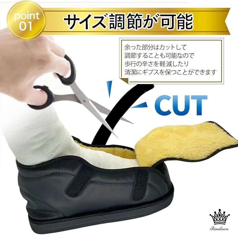 5サイズから選べるギプスシューズ 左右兼用 片足1足 21cm:普通のシューズのように履ける調整可能な術後シューズ 介護用 怪我用になります。両足兼用でご使用いただく事ができ、ギプスを汚さずに外出が可能です。21cm・24cm・25.3cm・27cm・29cmの5サイズをご用意しましたのでサイズに合わせて自由にお選びいただけます。サイズ調節が可能:こちらのギブスシューズ 靴はギブスの厚みに合わせてテープで調整できるので厚身のあるギプスでも履くことが出来ます。余った部分はカットして調節することも可能なので、歩行の辛さを軽減したり、清潔にギプスを保つことができます。大きく開くので足の出し入れが楽:こちらのギプスシューズ リハビリ 介護シューズは、開口部が大きく開くので着脱の際に楽に足の出し入れが可能です。負傷箇所に負担をかけることも少ないので、靴の着脱時の痛みを軽減します。足のケガなどで普通の靴の着脱で痛みを感じる方など、さまざまな足のトラブルでお悩みの方にご使用いただけます。また、踵とつま先の圧力を軽減する減圧形状で負傷箇所の負担を軽くします。優れた防寒性:こちらのギプスシューズ 介護シューズ 介護用 怪我用は外側はレザー素材、内側はを採用しておりますので、防寒性にも優れ秋冬の寒い季節でも活躍するでしょう。爪先部分は幅広い形状を採用しており、つま先の圧力を軽減する減圧構造で負傷箇所の負担を軽減します。滑り止め設計:靴底には滑り止め加工を採用したギプスシューズ ギプス 靴になっておりますので、転倒防止に役立ちます。また少し厚めの靴底を採用しています。「商品仕様」セット内容:ギプスシューズ 介護用 怪我用 x 片足1足 カラー:黒 サイズ:ギプスの全長 21cm 重量:約150g 素材:外側:PU , 内側:ポリエステル製 使用用途:ギプス用の靴、室内、室外、院内、怪我、高齢者の方、介護、リハビリ、手術後 *モニターの環境等により、色の見え方に若干差が生じる場合がございます。※ 他ネットショップでも併売しているため、ご注文後に在庫切れとなる場合があります。予めご了承ください。※ 品薄または希少等の理由により、参考価格よりも高い価格で販売されている場合があります。ご注文の際には必ず販売価格をご確認ください。※ 沖縄県、離島または一部地域の場合、別途送料の負担をお願いする場合があります。予めご了承ください。※ お使いのモニタにより写真の色が実際の商品の色と異なる場合や、イメージに差異が生じることがあります。予めご了承ください。※ 商品の詳細(カラー・数量・サイズ 等)については、ページ内の商品説明をご確認のうえ、ご注文ください。※ モバイル版・スマホ版ページでは、お使いの端末によっては一部の情報が表示されないことがあります。すべての記載情報をご確認するには、PC版ページをご覧ください。