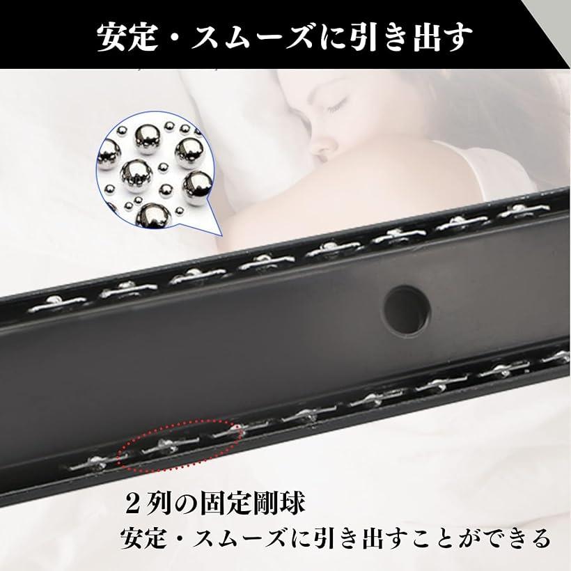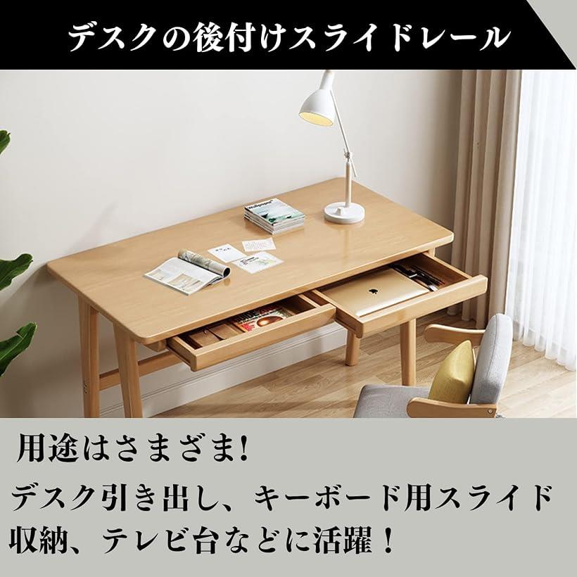 「デスクの後付けスライドレール」デスク引き出し・ キーボード用スライド収納やテレビ台に対応可能です。用途はさまざまです。「静かでスムーズに引き出し」(1)衝突防止ゴム:騒音の低減、そして、引き出しが自動に滑り落ちることを防ぎます。(2)2列の固定剛球:引き出しを優しくスムーズに引き出すことができます。「優しくスムーズに引き出し」2列の固定剛球:引き出しを優しくスムーズに引き出すことができます。「頑丈でありながら、サビにくい」厚くステンレス鋼製で、頑丈で耐摩耗性がありながら、サビにくいです。「取り付け方法」 L型の金具を天板の裏側へ、インナーレールは引き出し側板へ取り付けたら作業完了です。作業が苦手な方にもオススメです。「商品仕様 」左右1ペア2本セット カラー:ブラック 材質:スチール 収縮時のサイズ:約250mm 耐荷重:約25kgまで 3段引き仕様※ 他ネットショップでも併売しているため、ご注文後に在庫切れとなる場合があります。予めご了承ください。※ 品薄または希少等の理由により、参考価格よりも高い価格で販売されている場合があります。ご注文の際には必ず販売価格をご確認ください。※ 沖縄県、離島または一部地域の場合、別途送料の負担をお願いする場合があります。予めご了承ください。※ お使いのモニタにより写真の色が実際の商品の色と異なる場合や、イメージに差異が生じることがあります。予めご了承ください。※ 商品の詳細(カラー・数量・サイズ 等)については、ページ内の商品説明をご確認のうえ、ご注文ください。※ モバイル版・スマホ版ページでは、お使いの端末によっては一部の情報が表示されないことがあります。すべての記載情報をご確認するには、PC版ページをご覧ください。