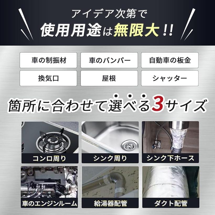 「極厚!高耐久のアルミテープ」厚さ0.2mmの極厚仕様だから、プロの現場でも使えるタフな耐久性。DIYユーザーから業務用途まで、信頼できる高性能アルミ箔テープです。「高温にも耐えられる耐熱性能」コンロ・ダクトなど高温環境でも安心してご利用いただけます。「防水・防音加工」特殊加工により、水漏れや音漏れにもこのテープでご利用いただけます。「様々な場所で活用できる」金属やプラスチック・木材など色々な素材にご利用いただけます。「コンクリートの塊を持ち上げられる粘着力」超強力な粘着力なため、色々な用途でご利用いただけます。「手間いらずの簡単テープ」必要な分だけ伸ばして、カットするだけ。最短5秒でご利用いただけます。「カキテープ」はかきもと商店所有の登録商標(第6664042号)です。※ 他ネットショップでも併売しているため、ご注文後に在庫切れとなる場合があります。予めご了承ください。※ 品薄または希少等の理由により、参考価格よりも高い価格で販売されている場合があります。ご注文の際には必ず販売価格をご確認ください。※ 沖縄県、離島または一部地域の場合、別途送料の負担をお願いする場合があります。予めご了承ください。※ お使いのモニタにより写真の色が実際の商品の色と異なる場合や、イメージに差異が生じることがあります。予めご了承ください。※ 商品の詳細(カラー・数量・サイズ 等)については、ページ内の商品説明をご確認のうえ、ご注文ください。※ モバイル版・スマホ版ページでは、お使いの端末によっては一部の情報が表示されないことがあります。すべての記載情報をご確認するには、PC版ページをご覧ください。
