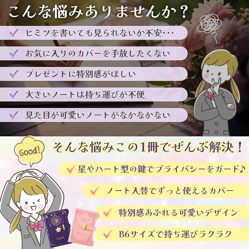 鍵付きノート 日記帳 b6 自分だけの世界 詰め替え可能 横罫 手帳 可愛い 子供 小学生 女の子 プレゼント 誕生日 ブラック ブルー ホワイト パープル 薄紫 ピンク