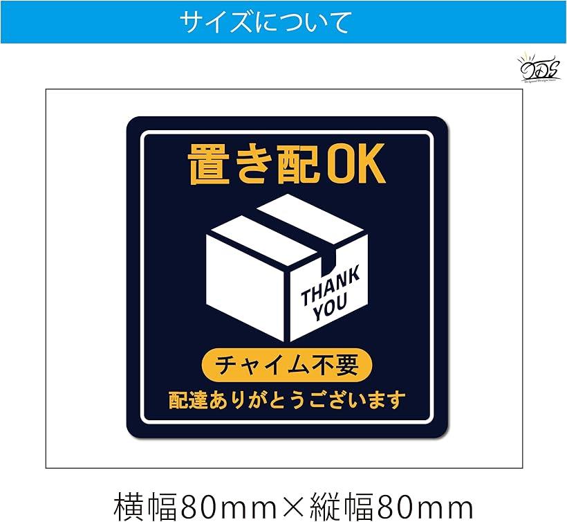 置き配ステッカー 宅配ボックス W80mmxH80mm 屋外 耐UV 耐候 防水 宅配BOXに入らない荷物 置き配OK 置き配OK チャイム不要 ホワイトxイエロー ネイビーxイエロー 不在時は宅配BOXへ