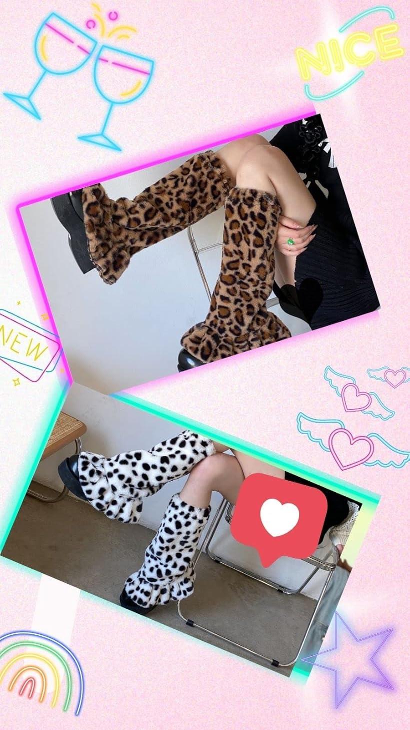ルーズソックス レッグウォーマー ファー y2k ファッション フェイクファー サブカル系 地雷系ファッション ヒョウ柄