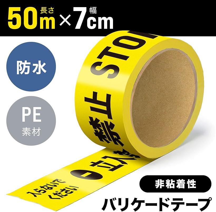 「立入禁止 STOP。 入らないでください」幅7cm x 50mのバリケードテープです。イベント、工事現場、畑や田んぼ、私有地、災害時や緊急時など様々な用途でお使い頂けます。視認性の高い黄色のテープに警告メッセージが印刷されています。遠くからでも視認しやすく、安全対策として効果的です。2本上下に張る事で潜り込みの防止や跨ぐ事に対し効果が高くなります。素材:非粘着性PE(屋外での使用に適しています)※ 他ネットショップでも併売しているため、ご注文後に在庫切れとなる場合があります。予めご了承ください。※ 品薄または希少等の理由により、参考価格よりも高い価格で販売されている場合があります。ご注文の際には必ず販売価格をご確認ください。※ 沖縄県、離島または一部地域の場合、別途送料の負担をお願いする場合があります。予めご了承ください。※ お使いのモニタにより写真の色が実際の商品の色と異なる場合や、イメージに差異が生じることがあります。予めご了承ください。※ 商品の詳細(カラー・数量・サイズ 等)については、ページ内の商品説明をご確認のうえ、ご注文ください。※ モバイル版・スマホ版ページでは、お使いの端末によっては一部の情報が表示されないことがあります。すべての記載情報をご確認するには、PC版ページをご覧ください。