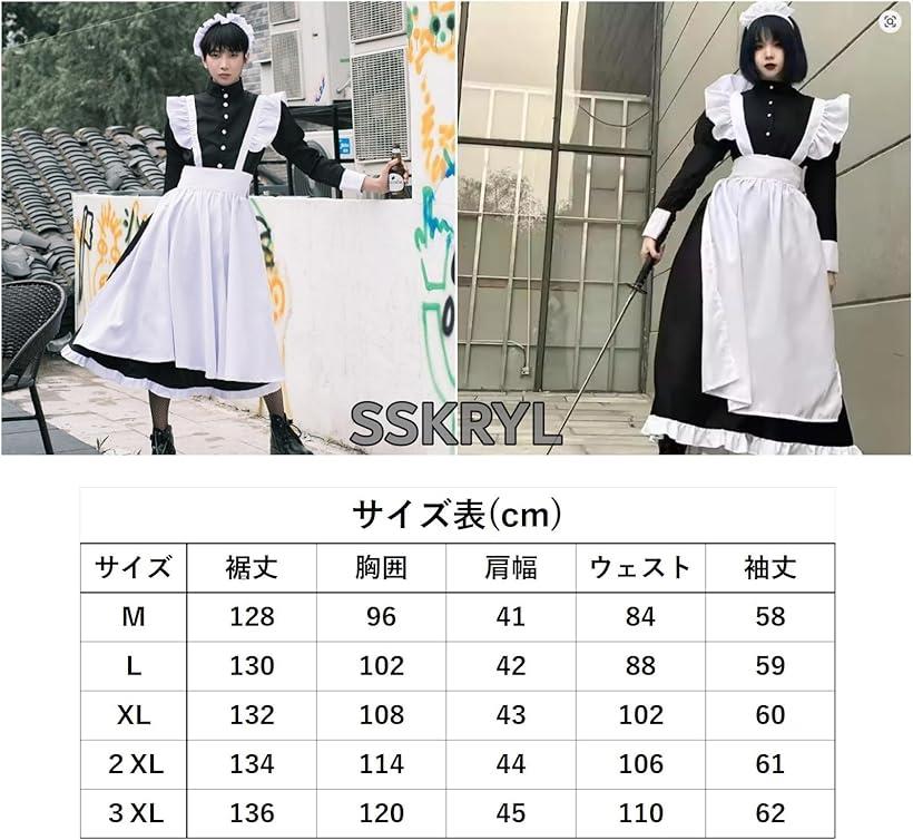 メイド服 コスチューム 仮装 衣装 女装 ロング 丈 ハロウィン イベント パーティー M L 2 3 S XL