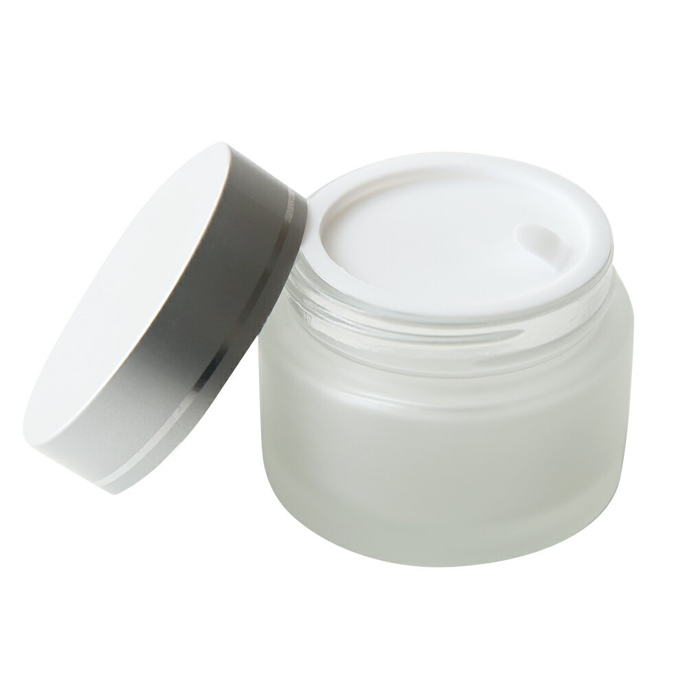フロストガラスジャー・シルバーキャップ[50ml]/1個 小さい 手作り コスメ 化粧品 クリーム 容器 移し替え アトマイザー 旅行用小分け 瓶 材料 ホワイト 乳白 銀 おしゃれ 密閉 保存 かわいい ハンドメイド