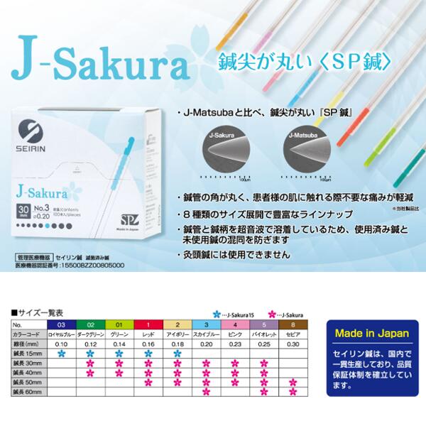 \本日、P2倍!!/ 「当日出荷可」【2個購入で50円OFFクーポン】SEIRIN セイリン 鍼 J-Sakura (旧 JSPタイプ)100本【鍼灸師用】鍼灸針 JSP Sakura サクラ 桜 セイリン鍼