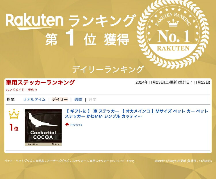 商品情報 サイズ Mサイズ 15cm×15cm※デザインにより、タテヨコのサイズは小さくなる場合があります。色 白・黒・青・赤・黄からお選び頂けます。※写真と実物では色合いが変わる場合がります。材質 3M社製、屋外用カッティングシート商品説明 転写式カッティングシートを切り抜いた商品となります。看板屋さんも使用する屋外用の丈夫なシートを使用しています。※尻尾など接着面が少ない小さなパーツは洗車やワイパーなどでゴシゴシ擦ると剥がれる可能性があります。関連商品車 ステッカー 【 文鳥 】Mサイズ ペット カー ペットステッカー ...車 ステッカー 【 カナリア 】Mサイズ ペット カー ペットステッカ...車 ステッカー 【 ズグロシロハラインコ 】Mサイズ ペット カー ペ...1,980円1,980円1,980円車 ステッカー 【 アキクサインコ 】Mサイズ ペット カー ペットス...車 ステッカー 【 十姉妹 】Mサイズ ペット カー ペットステッカー...車 ステッカー 【 キンカチョウ 】Mサイズ ペット カー ペットステ...1,980円1,980円1,980円車 ステッカー 【 コールダック 】Mサイズ ペット カー ペットステ...車 ステッカー 【 コザクラインコ 】Mサイズ ペット カー ペットス...車 ステッカー 【 アフリカオオコノハズク 】Mサイズ ペット カー ...1,980円1,980円1,980円車 ステッカー 【 ラブラドゥードル 】Mサイズ ペット カー ペット...車 ステッカー 【 モリフクロウ 】Mサイズ ペット カー ペットステ...車 ステッカー 【 コガネメキシコインコ 】Mサイズ ペット カー ペ...1,980円1,980円1,980円車 ステッカー 【 オカメインコ 】Mサイズ ペット カー ペットステッカー かわいい シンプル カッティングシート グッズ 屋外 おしゃれ オーダー 名前 シール 可愛い 転写式 鳥 おしゃれなペットのシルエット型カーステッカー オカメインコ のシルエット型カーステッカーです。3M社製の耐久性に優れた屋外用シートを使用。オーダーメイドで名前を入れられます。カッティング 転写式 窓 車ステッカー 2
