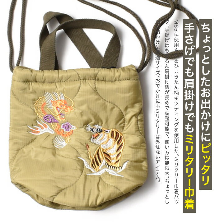 【 土日限定★全品10%OFFクーポン 】 巾着 バック トートバッグ ショルダー | 全2色 メンズ ブランド アメカジ 小物入れ 肩掛け バッグ ショルダーバック 刺繍 和柄 トラ 龍 キルティング ヒューストン ミリタリー 20代 30代 40代 50代 60代 メンズファッション カジュアル
