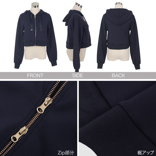 [ Yuumiさんコラボ ] ダブルジップショートパーカー [C7224] レディース トップス 大人 長袖 ショート丈 短丈 ゆうみ 20代 30代 40代 フェミニン きれいめ 上品 ママ プライベート 休日 おでかけ かわいい 可愛い