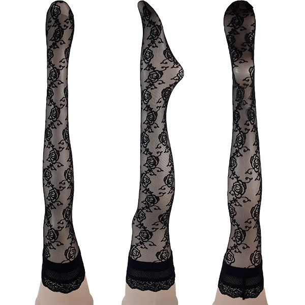 イタリア インポート 高級ブランド 柄ガーターストッキング OROBLU CAMELLIA 花柄レースガーターストッキング 黒