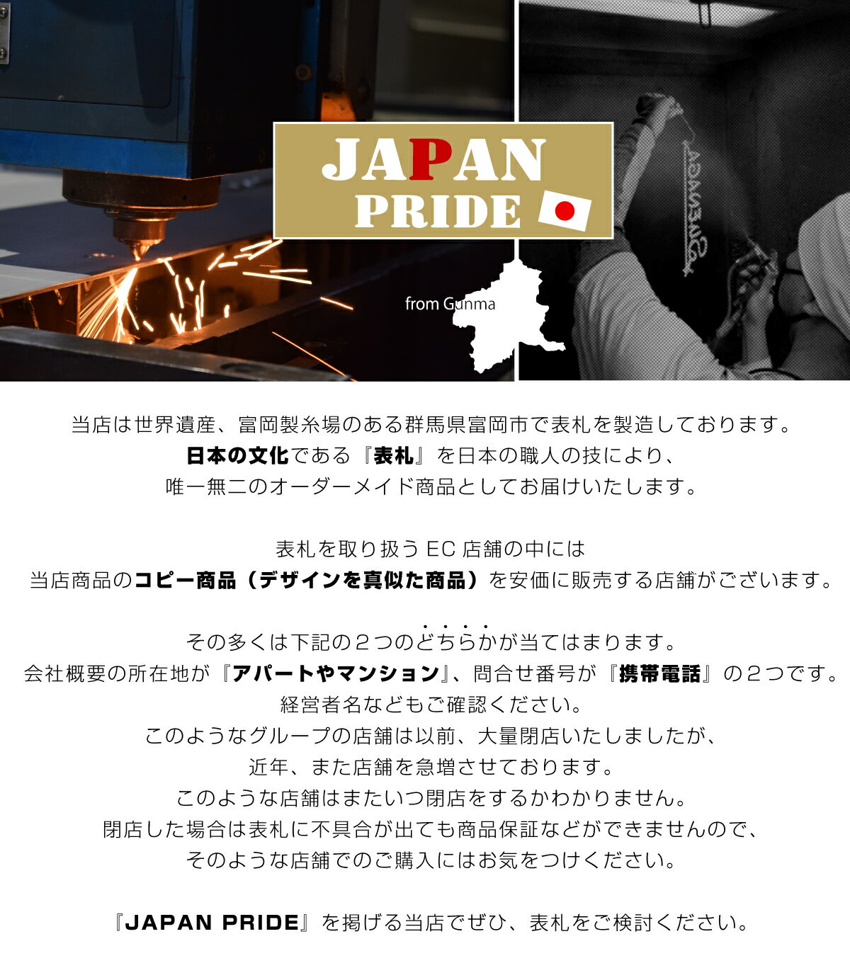 メーカー希望小売価格はメーカーカタログに基づいて掲載しています 表札【エクリチュール デザイン1】 ・材質:ステンレス(SUS304) 3mm厚、 5mm厚(+1,500円+税) ・取付方法:化粧ビスタイプ/ピンタイプ/浮きなし直貼りタイプ ・サイズ:基本サイズ 横幅~300mm 特注サイズ 横幅301~400mm(+2,000円+税) サイズの指定がある場合は備考欄に記載してください ※浮きなし直貼りタイプは最大で幅250mmまでとなります ※幅、高さは製作文字数により変動します 正確なサイズはご購入後に配信される図案にてご確認ください ・製作対応書体:手書き風書体 ・基本文字数:ローマ字10文字まで ローマ字11文字以上は1文字追加ごとに1,000円+税 (文字数制限あり、製作文字数が多い場合は事前にお問い合わせください) ※ひらがな、カタカナ、記号(./&など)は製作不可となります [Option] ■板厚 5mm 1,500円+税 ■特殊塗装 1,000円+税 or 3,000円+税 ■サイズ変更 可能 ※サイズによりオプション料金が発生 ■番地追加 +7,000円+税 ~ ※カラーによりオプション料金が発生 ■図案4案目以降の作成 1案につき1,000円+税 ■対応取付補助具 らくピタ 丸型/角型 3,500円+税(表札とのセット価格)