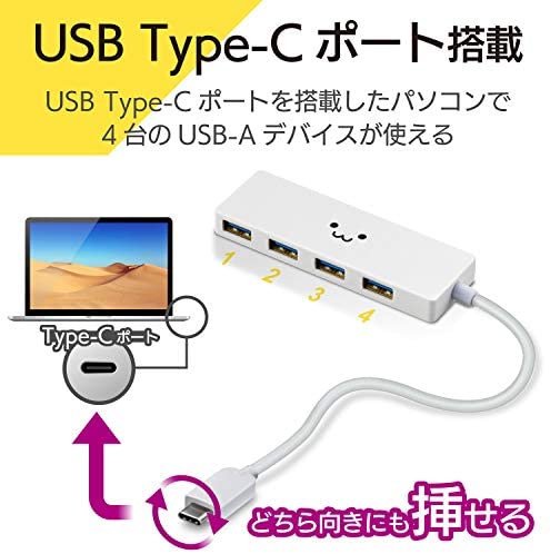 エレコム usbハブ USB3.1 Gen1 Type-C Aメス4ポート バスパワー 15cmケーブル<店内2点以上お買上げでさらに200円引クーポン進呈> エレコム usbハブ USB3.1 Gen1 Type-C Aメス4ポート バスパワー 15cmケーブル 送料無料 ■USB Type-Cポートを搭載したパソコンで4台のUSB-Aデバイスが使える4ポートUSB3.1 Gen1ハブです。 ■最大5Gbps(理論値)とUSB2.0の約10倍の超高速データ転送を実現するUSB3.1 Gen1に対応し、高速でのデータ転送が可能です。 ■USB Type-Cコネクタは、オモテとウラがなく、向きを気にせず差し込み可能です。 ■1万回の挿抜に耐える堅牢なコネクタを採用しています。頻繁に抜き挿ししても破損しにくい構造です。 ■最大5V3Aの電力供給が可能で、ACアダプタがなくても接続機器の安定動作を実現します。 ■ACアダプター不要のバスパワー専用タイプです。 ■持ち運びにも便利な厚さ約10mmの超薄型設計です。 ■ケーブルは紛失の心配がない直付けタイプで、ケーブルの長さはかさばらずに使える約15cmです。USBType-Cポートを搭載したパソコンで4台のUSB-Aデバイスが使える4ポートUSB3.1Gen1ハブです。 最大5Gbps(理論値)とUSB2.0の約10倍の超高速データ転送を実現するUSB3.1Gen1に対応し、高速でのデータ転送が可能です。 USBType-Cコネクタは、オモテとウラがなく、向きを気にせず差し込み可能です。 1万回の挿抜に耐える堅牢なコネクタを採用しています。頻繁に抜き挿ししても破損しにくい構造です。 最大5V3Aの電力供給が可能で、ACアダプタがなくても接続機器の安定動作を実現します。