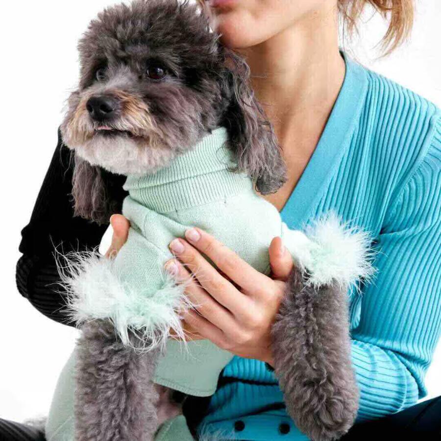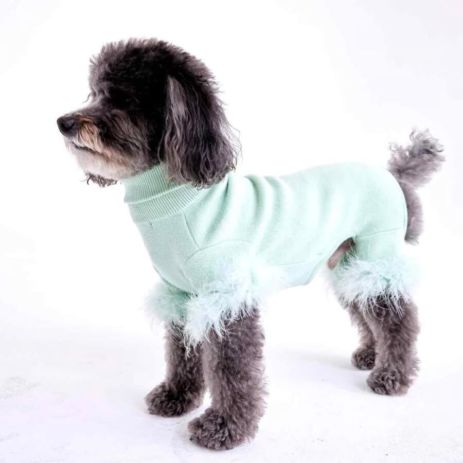 max-bone ファーつきニット ミント ピンク ベージュ サイズ交換無料 マックスボーン ファーつきニット ロンパース ドッグウエア 北欧 ハイクオリティ 防寒 トイプー フレブル 袖あり 犬服 冬服 小型犬 リードを通す穴あり ストレッチ素材 犬用ニット モフモフ