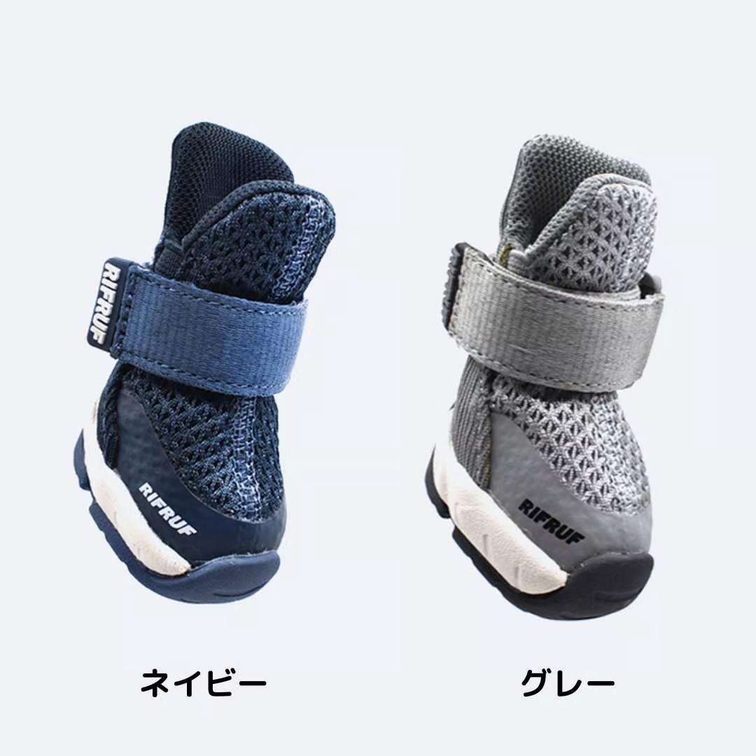 【即納】 RIFRUF ドッグスニーカー ネイビー グレー サイズ交換無料 スニーカー 靴 肉球を守る 雨の日 軽い 滑りにくい 履かせやすい 脱げにくい モフモフ 獣医師推奨 犬用 かわいい ペット靴 地熱対策