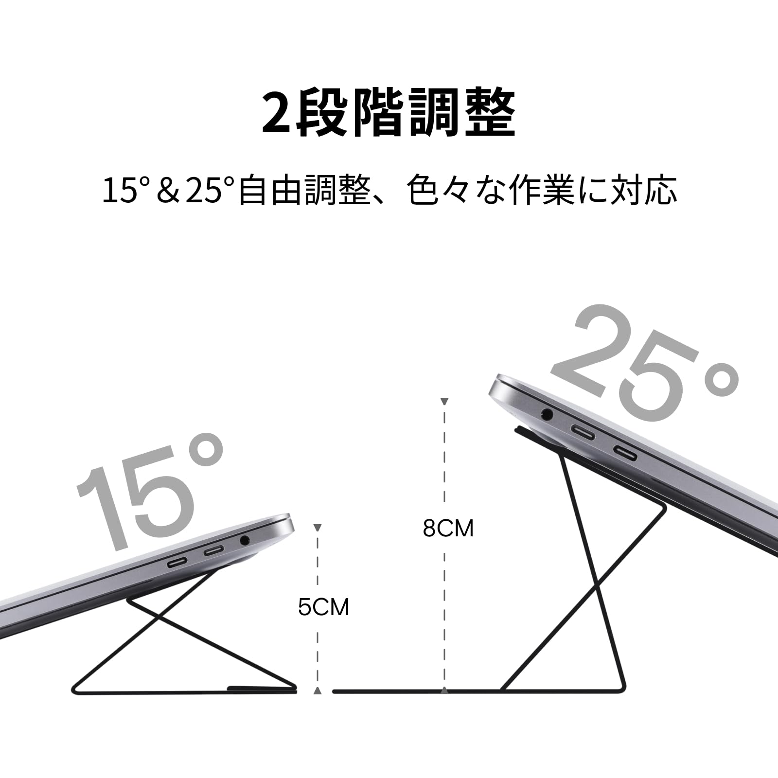 【MOFT公式~PCと一体化】MOFT公式 パソコンスタンド 15° 25° PCスタンド 粘着タイプ 持ち運び簡単 超薄型 二段階調整可能 16インチまで対応 コンパクト 繰り返し利用可能 放熱穴付き 折り畳式 腰痛防止