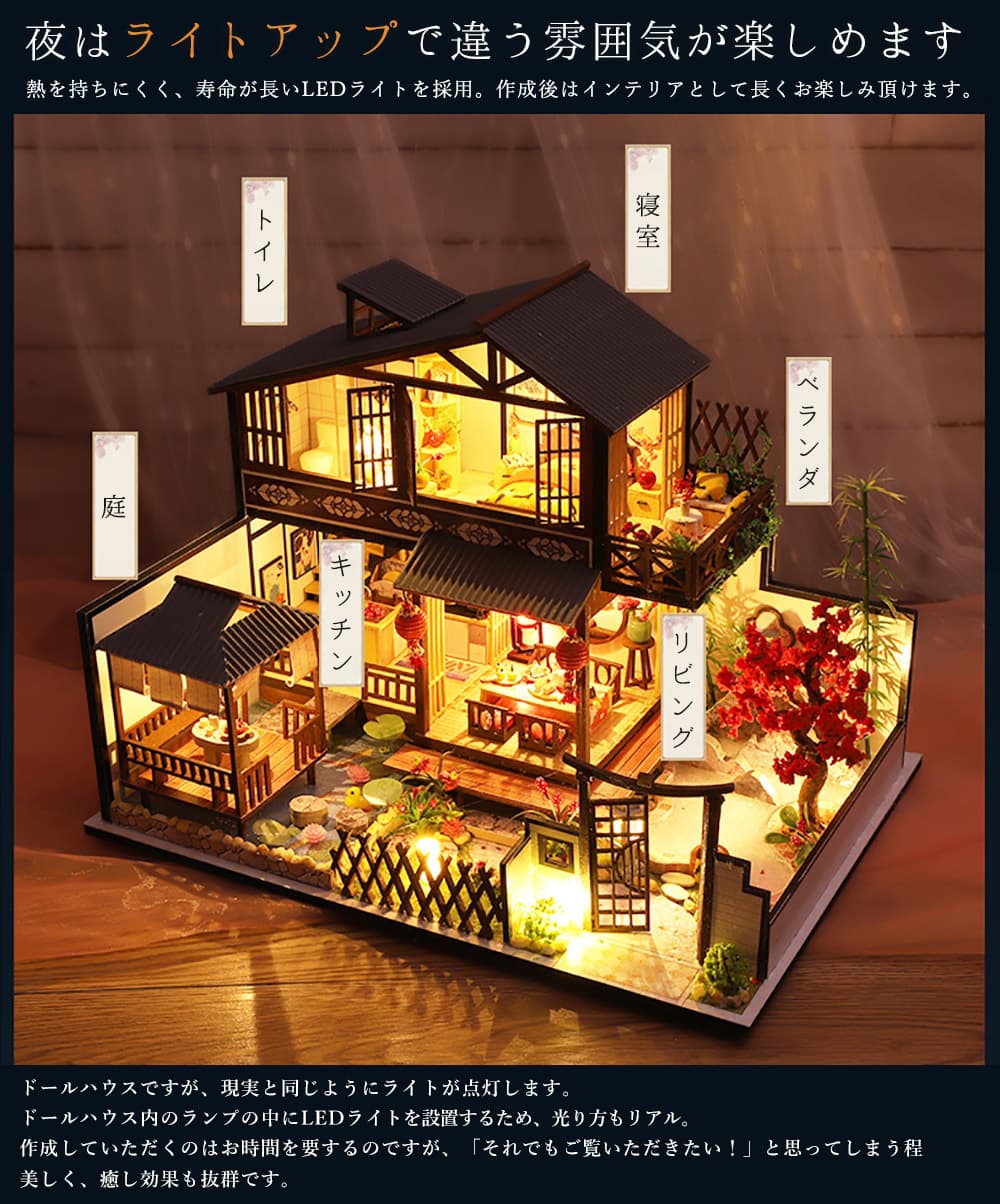 【P10倍!!】最短当日出荷◆ドールハウス ミニチュア 手作りキットセット 和風 日本の家 【英語説明書 付属】 豪邸 秋 もみじ 紅葉 二階建て | 大型 | LEDライト (日本家屋)