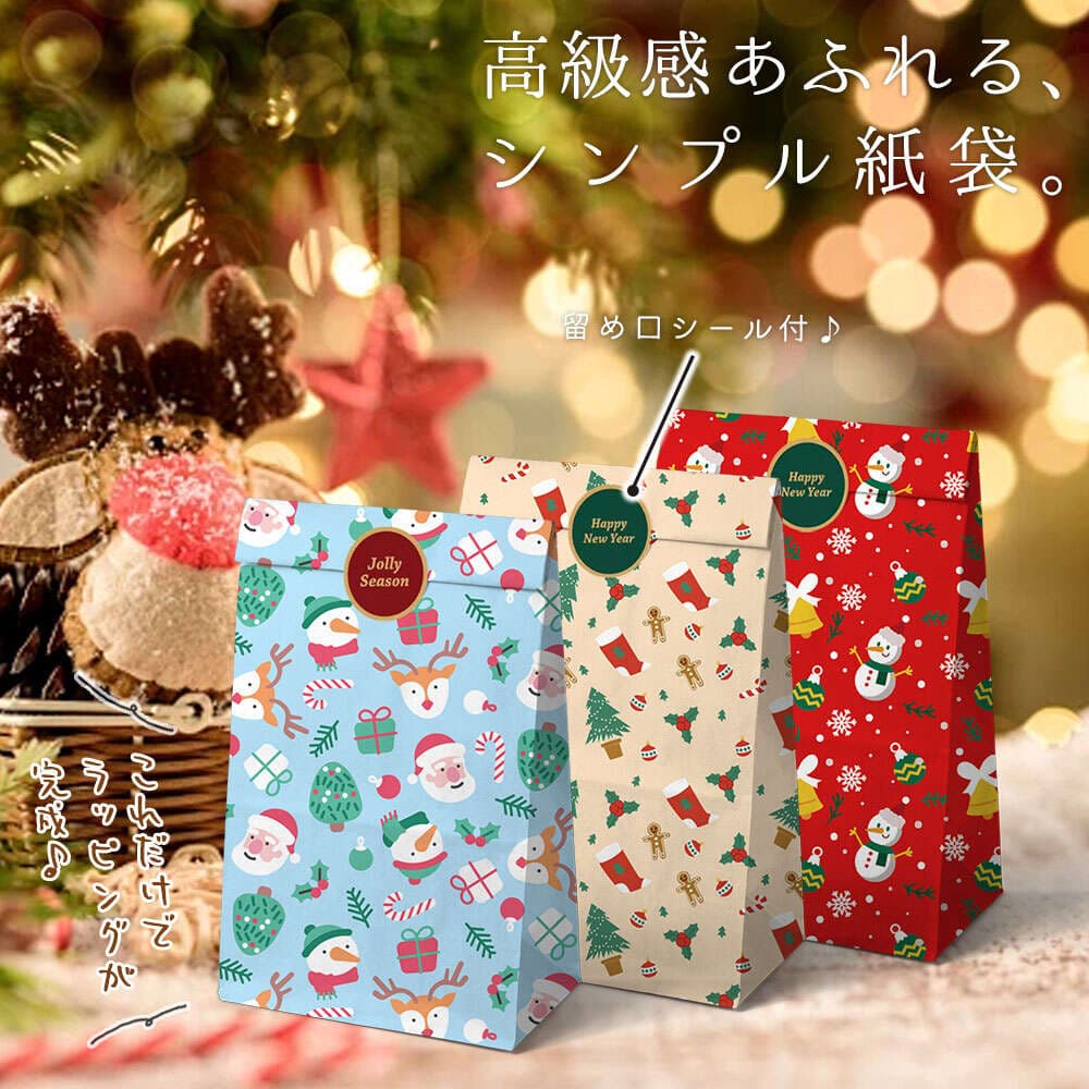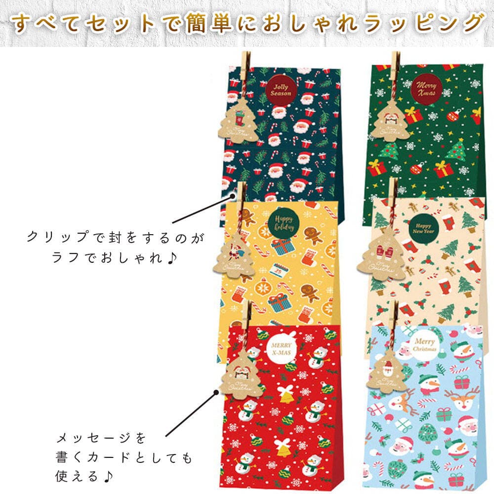 最短当日出荷◆大量 12個セット ラッピング ボックス 紙袋 (クリスマス 総柄) 12x22cm+紐 (赤 白 ストライプ)+タグ+ウッド クリップ+シール/ギフト プレゼント デコレーション 飾り 装飾 サンタさん トナカイ ツリー 紙箱 ペーパー