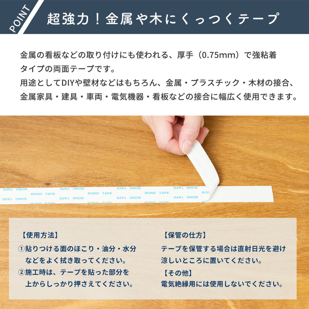 両面テープ 強力 接着剤 施工 テープ 内装 壁 DIY 0.75mm厚超強力両面テープ 屋外 看板 金属 木材 施工道具 ポリエチレンフォーム アクリル系粘着剤 メール便2個まで C-1-3